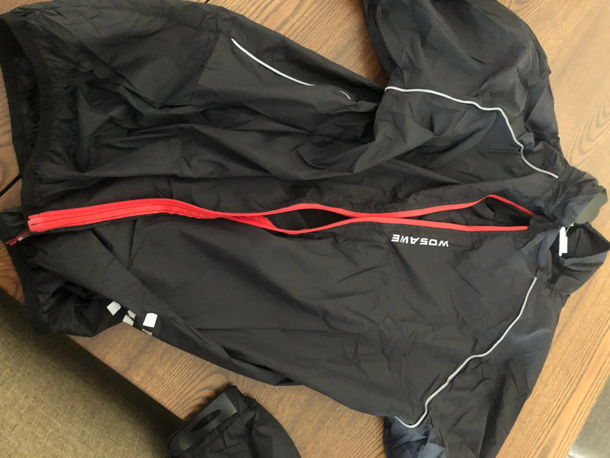 Ultra fast shipping 5 days to Brasil is a record. The material is very light, feels good and seems well done. Some leftover threads near the zipper can indicate some quality issues but only a long term test will prove. The reflection is very bright for security. I really liked the product and recommend it.