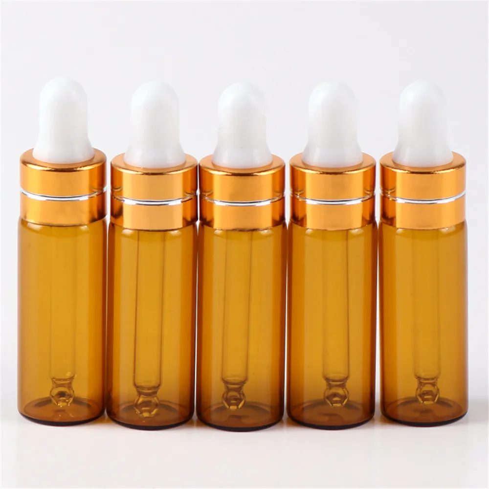 Пустой флакон-капельница Янтарное эфирное масло, стеклянная жидкость для ароматерапии, коричневая, 3 мл, 5 мл, капля для массажной пипетки, многоразовые бутылки
