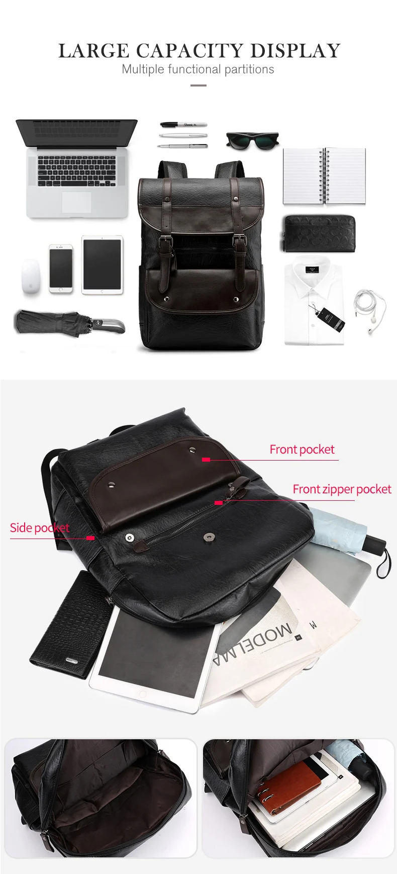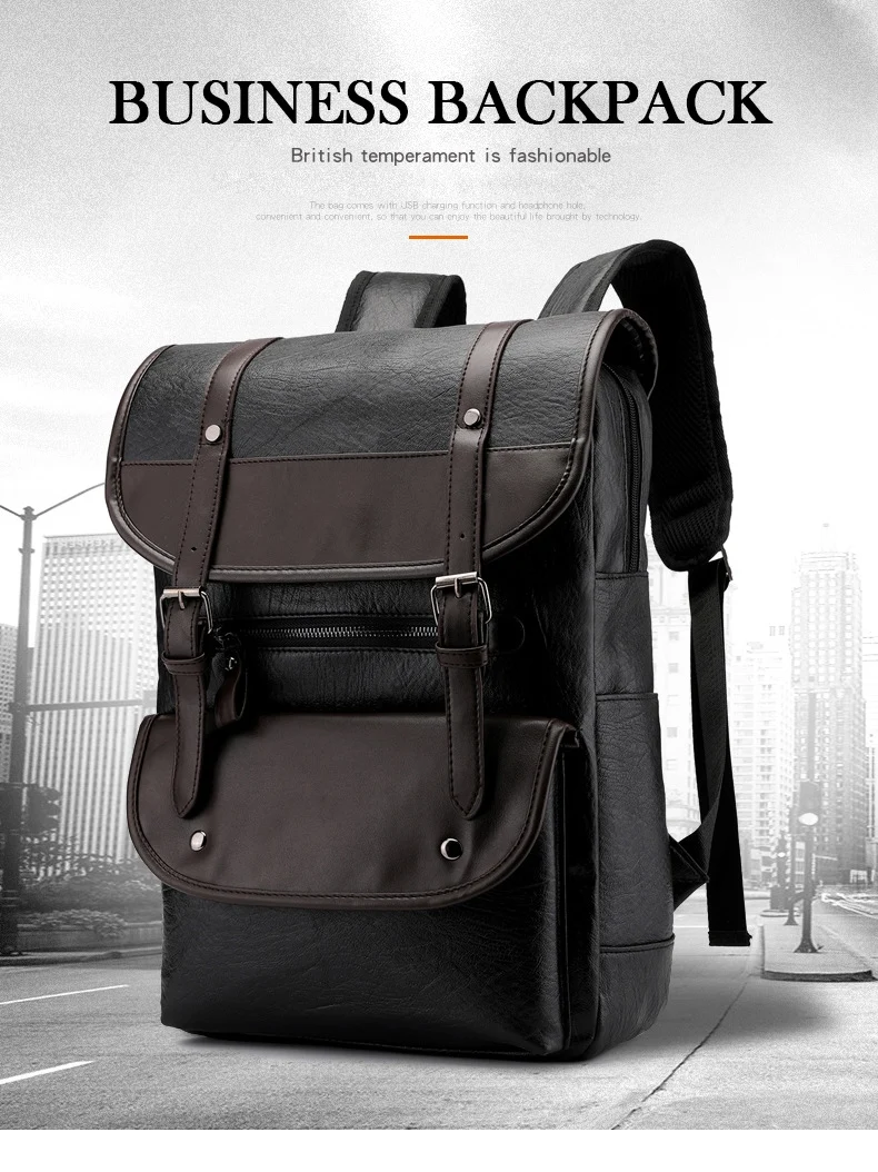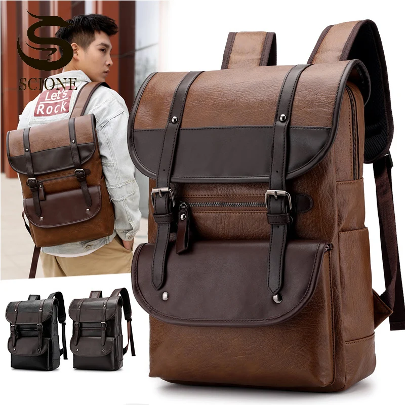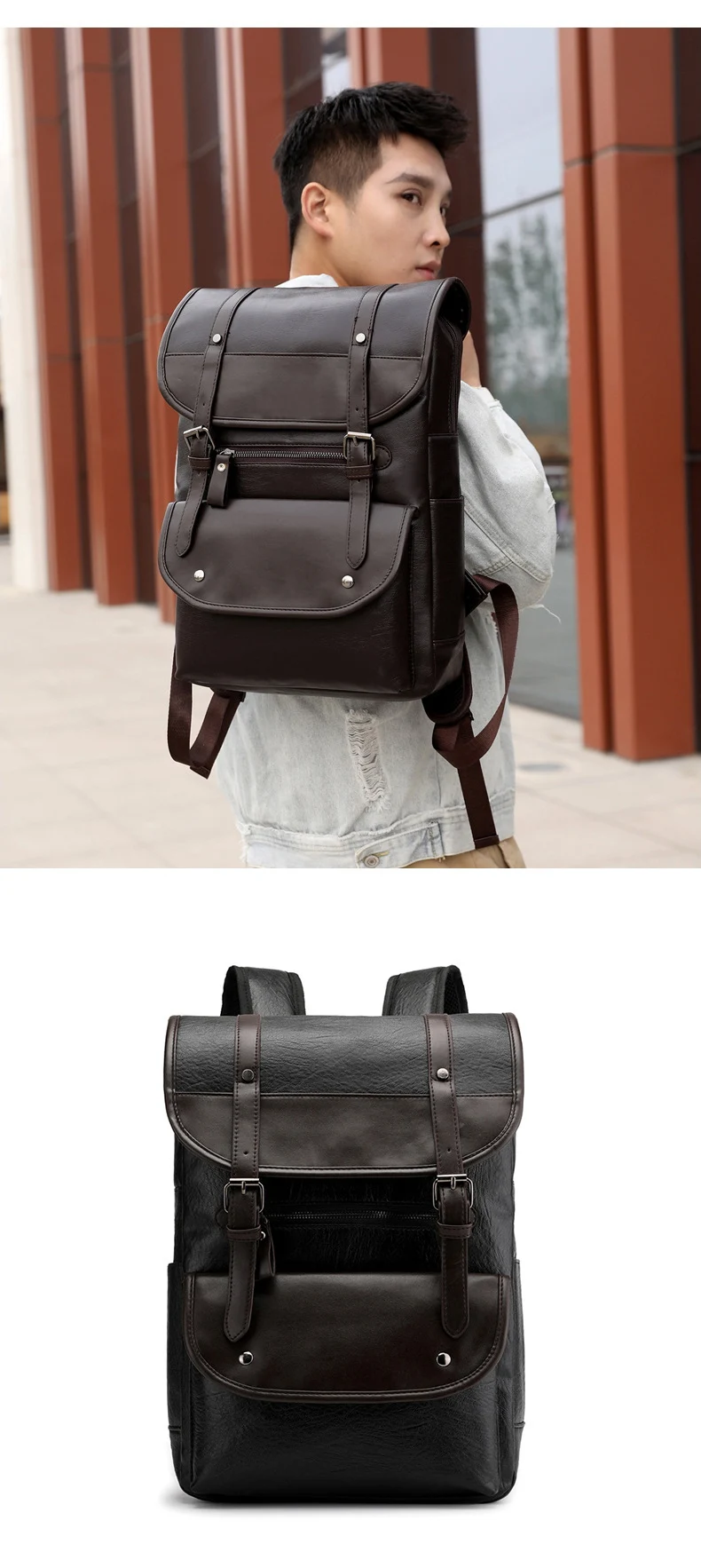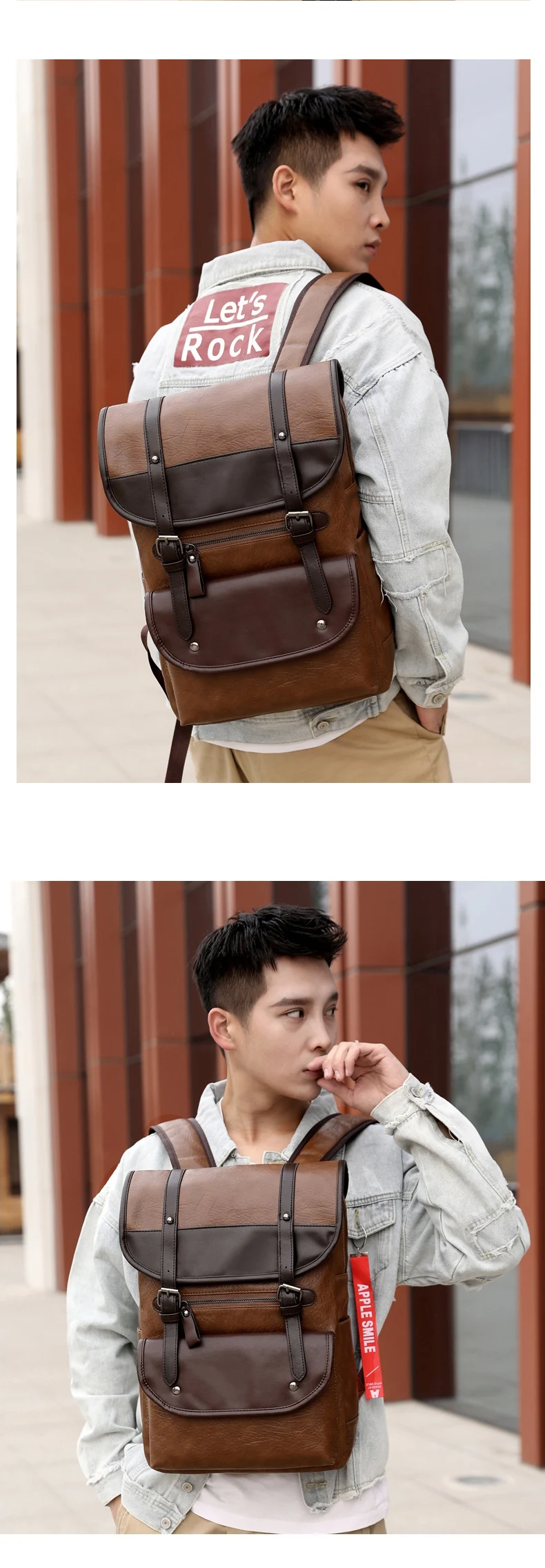 Винтажный Мужской рюкзак, повседневный мужской рюкзак из искусствен...