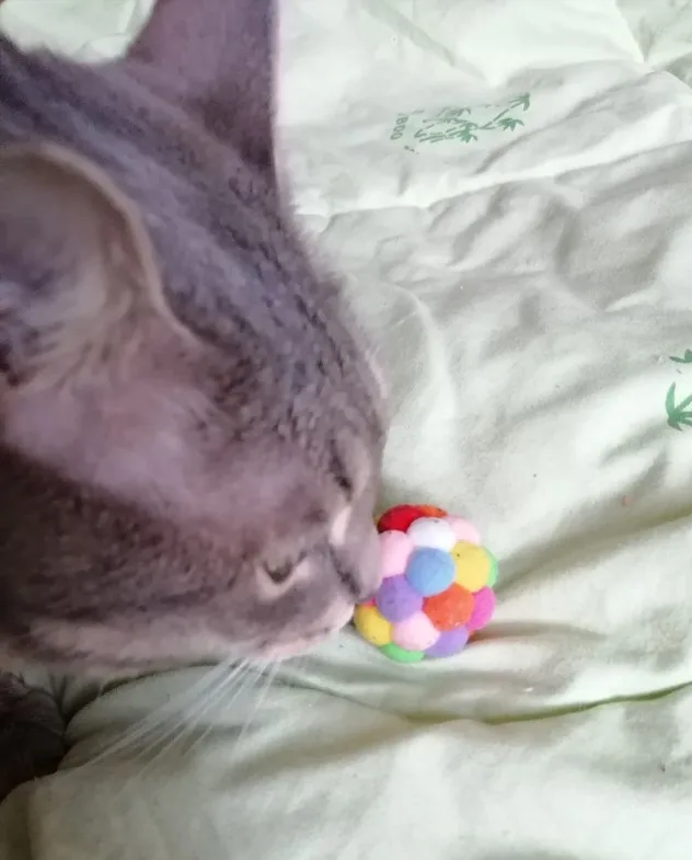 классные шарики. плотные. со звенелкой внутри. котик заценил)