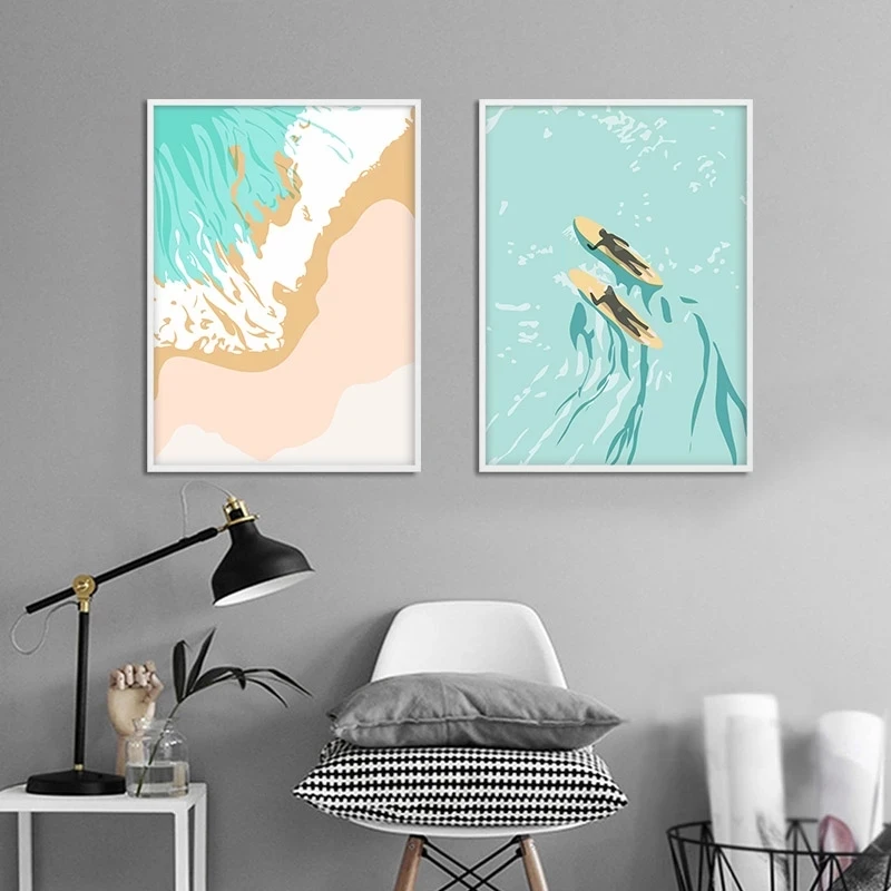 Голубая Абстрактная Картина на холсте, скандинавский Декор для дома...