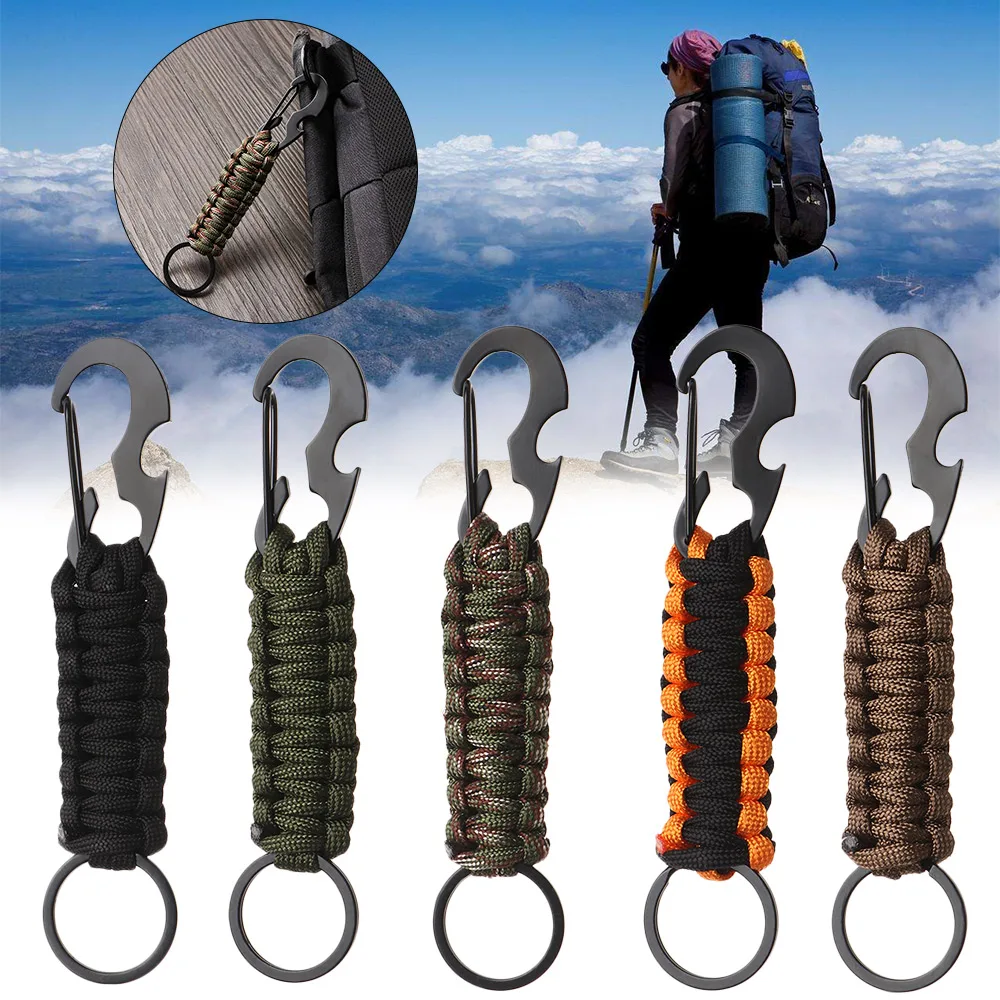 Походный брелок, кольцо, карабин для кемпинга, военный Паракорд, шнур, веревка для кемпинга, набор для выживания, аварийный узел, открывалка для бутылок, инструменты