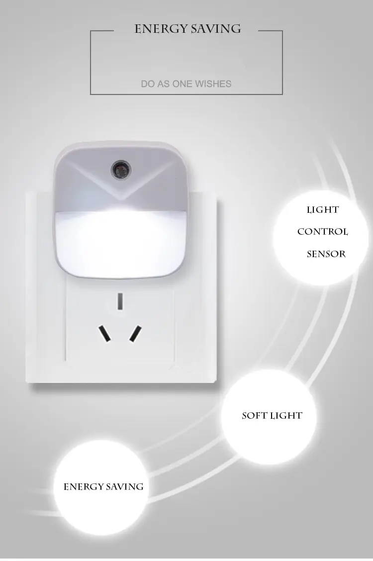 Ночсветильник с датчиком освещенности, вилка стандарта ЕС, США, нов...