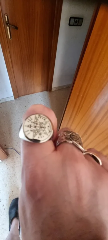 El grabado de la estrella de cinco puntas está mal, porqué tiene qué ser ,el dibujo de la estrella de cinco puntas donde reside los ojos la punta superior y muy importante, está mal orientada, por lo de más, pienso un anillo normal gracias