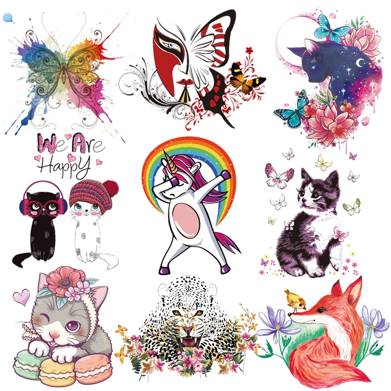 Термонаклейки Prajna на одежду, патчи с бабочками, утюжок на патчи для одежды, термопереводные милые наклейки на футболку с животными