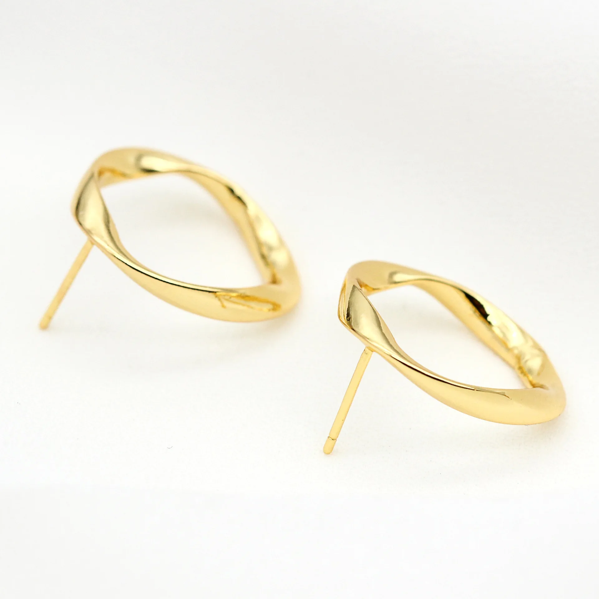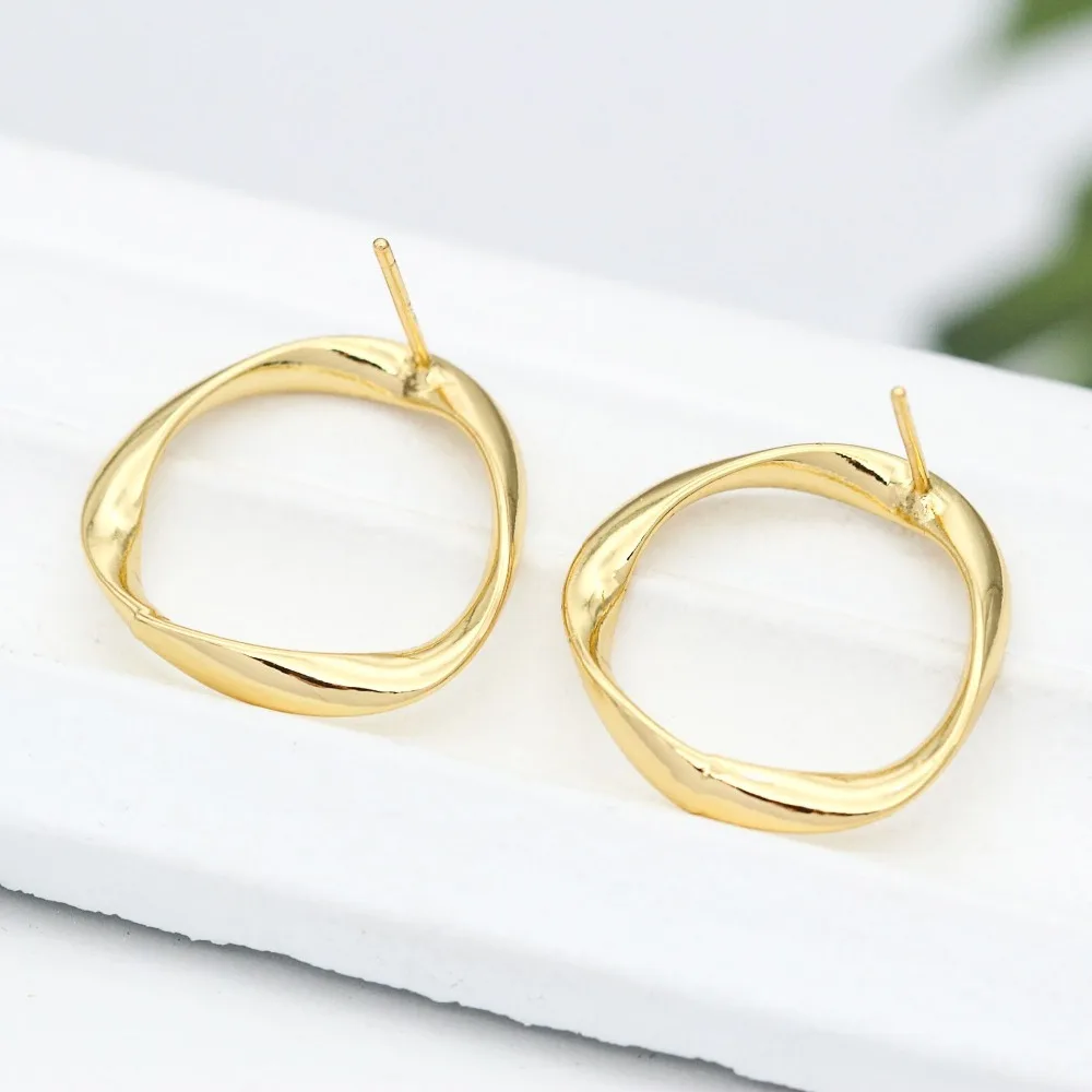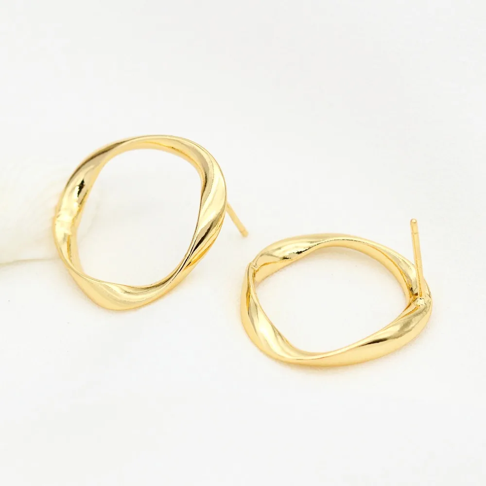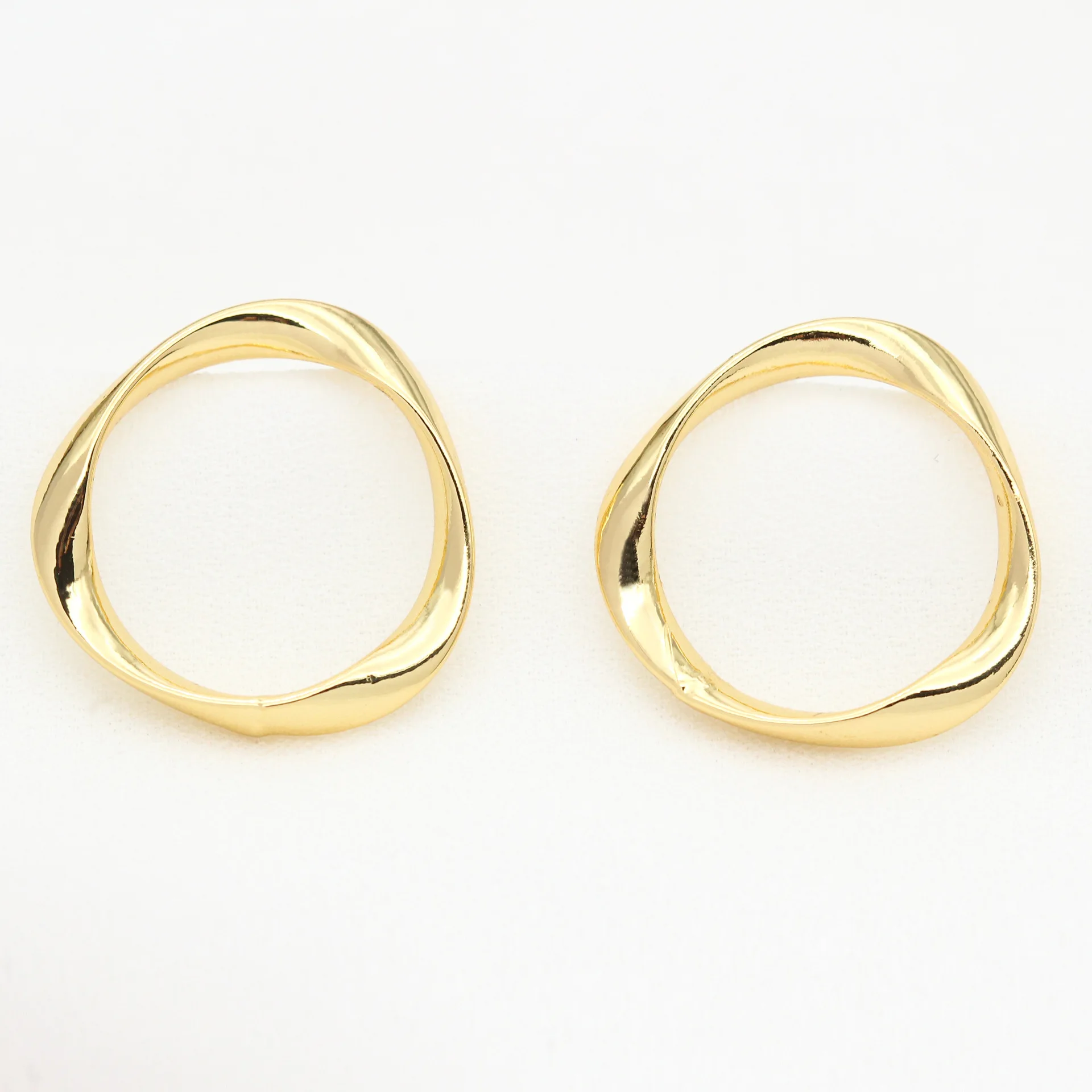 Серьги-гвоздики круглые латунные, 21 мм, 24 к, 6 шт.