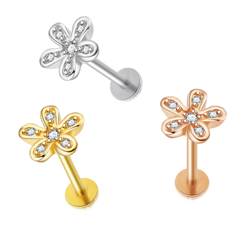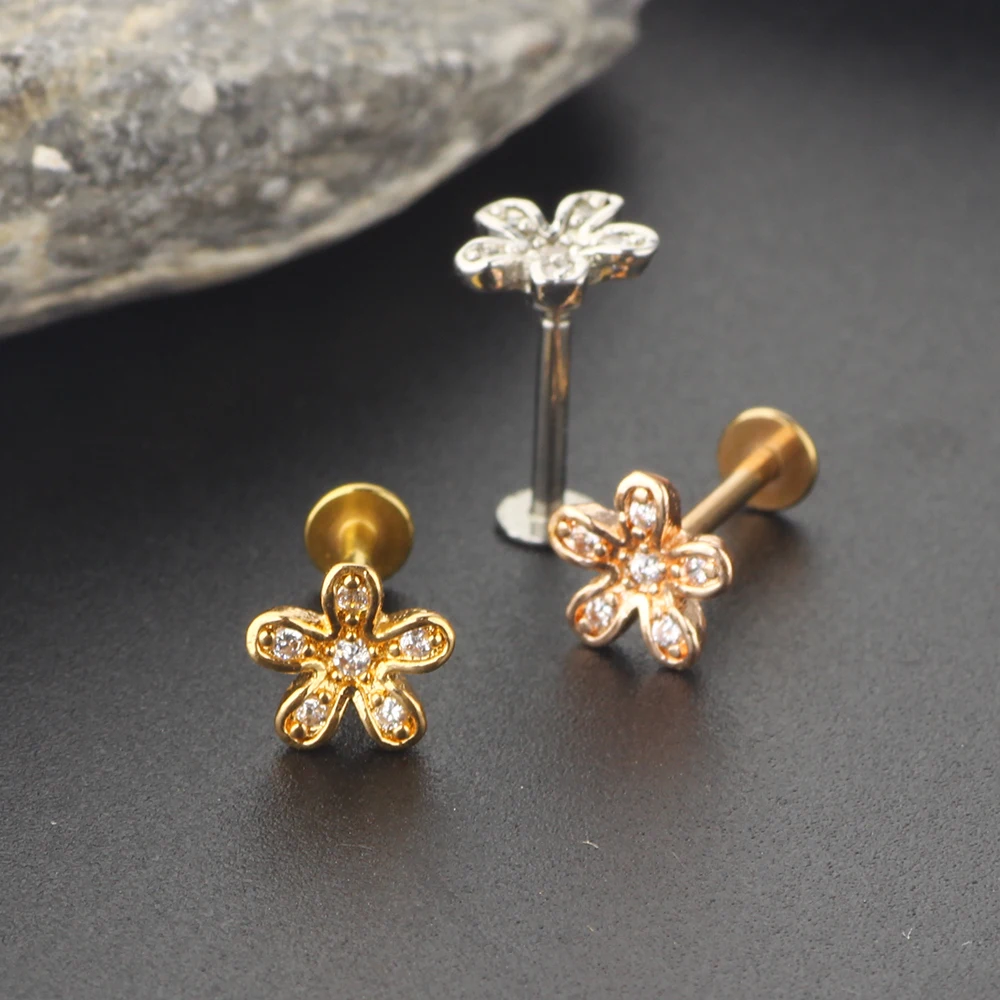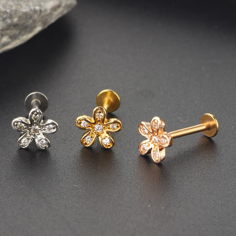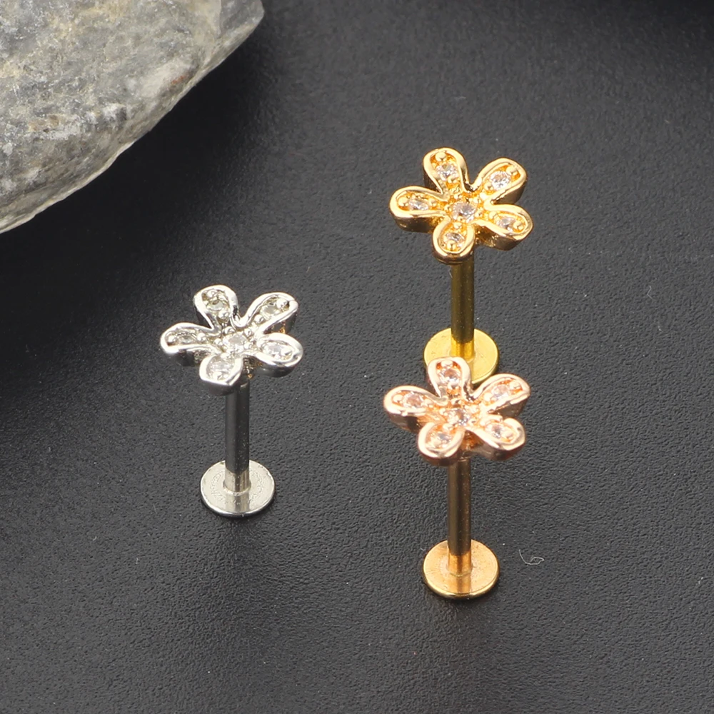 JUNLOWPY 16G хирургическая Сталь цветок Лабрет Монро губ кольца из нержавеющей стали, козелка серьги 516 креплением ушные ювелирные изделия для пирсинга, 50 шт в наборе