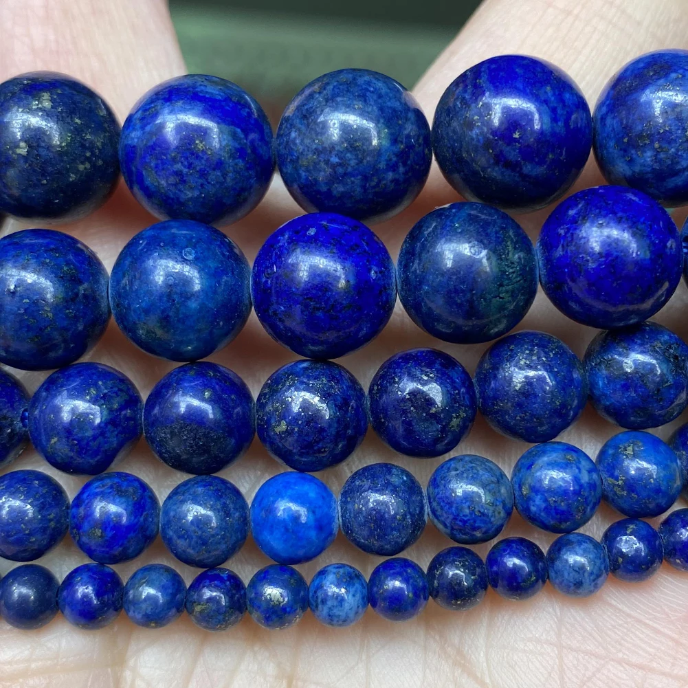 Натуральный Лазурит, Круглый незакрепленный браслет каменные бусины-разделители для самостоятельного изготовления ювелирных изделий, аксессуары для браслетов 4, 6, 8, 10, 12 мм, 15 дюймов, нить