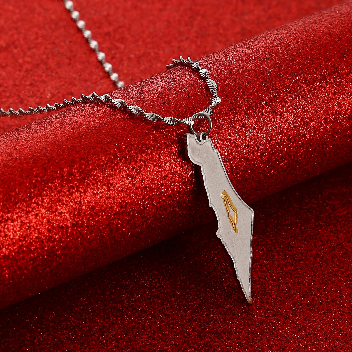 Нержавеющая сталь карта Израиля кулон ожерелье для женщин и мужчин, еврейское карты Израиля, ювелирные изделия в качестве подарка