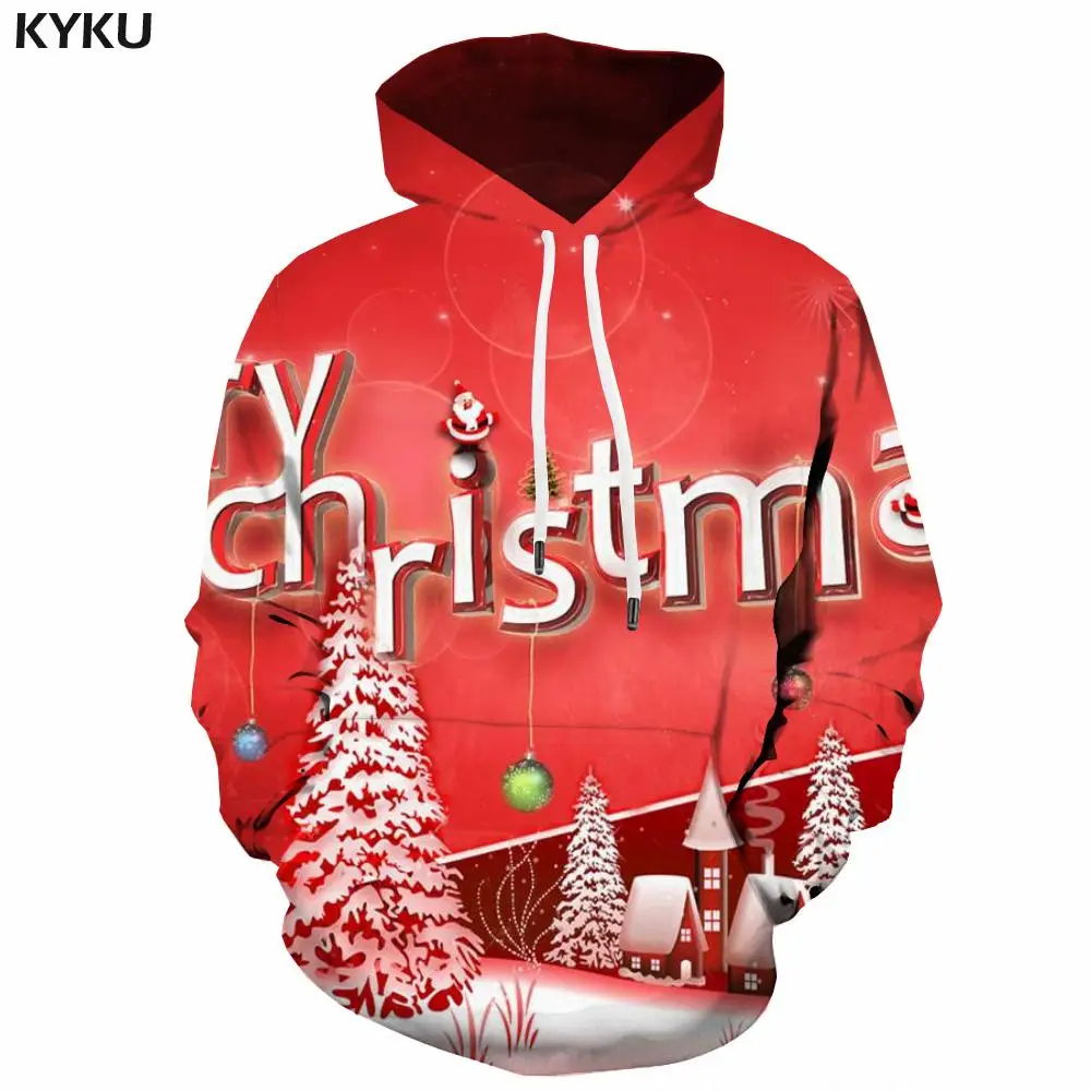 Худи мужское с 3D-принтом, свитшот на новый год, Повседневная Красн...