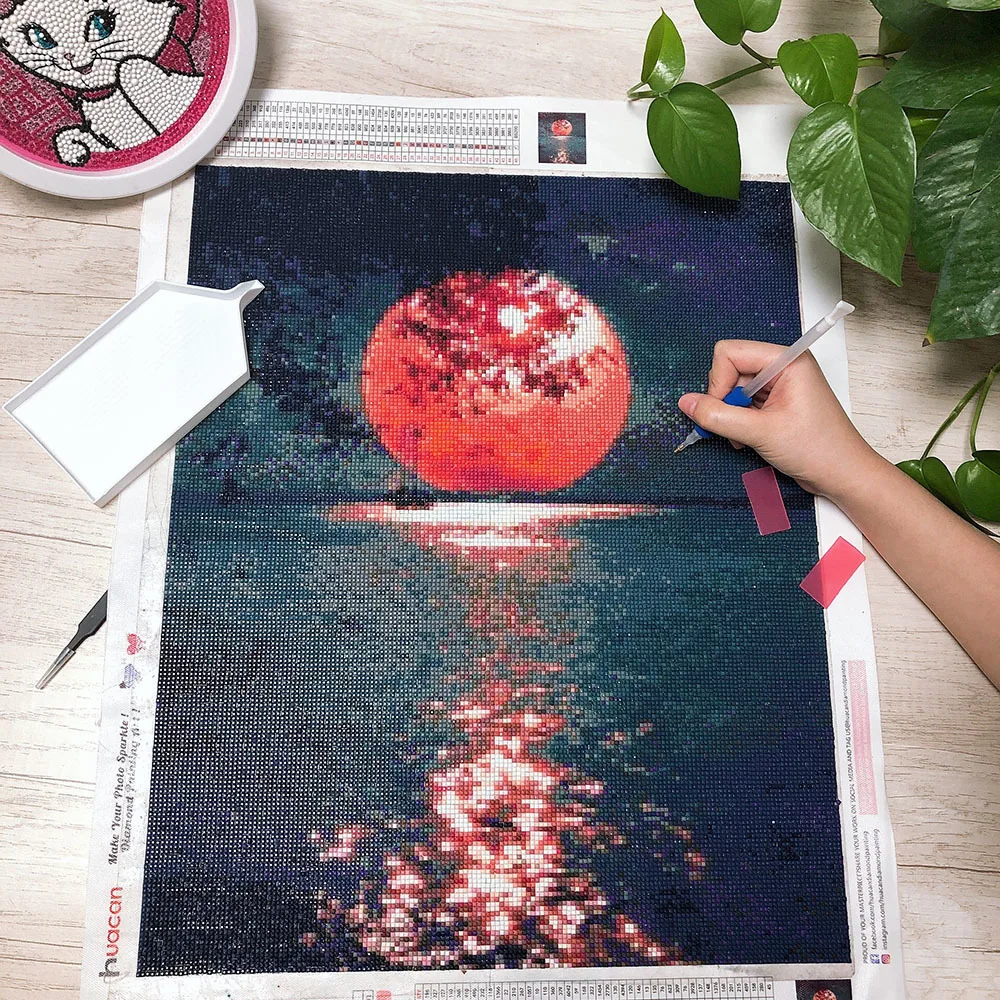 Алмазная вышивка Huacan, полноразмерная мозаика с Луной, 5d набор Пейзаж, домашний декор