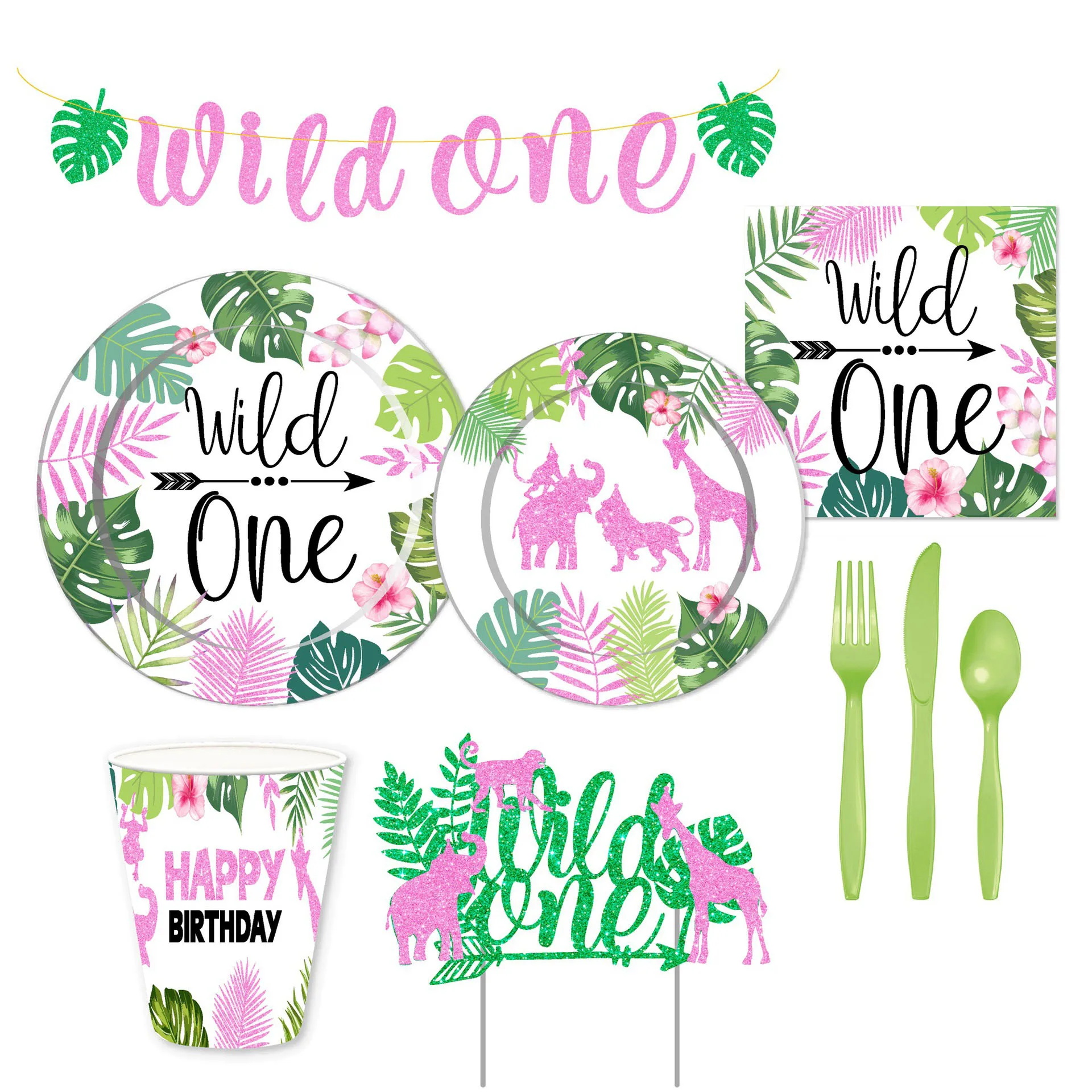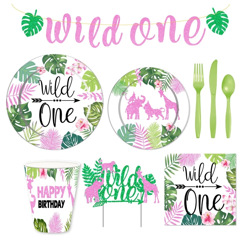 Розовый и надписью Wild One вечерние одноразовые сафари джунгли вечерние посуда чашки джунгли детские предметы декора для вечеринок и дней рождения первое 1st День рождения вечерние