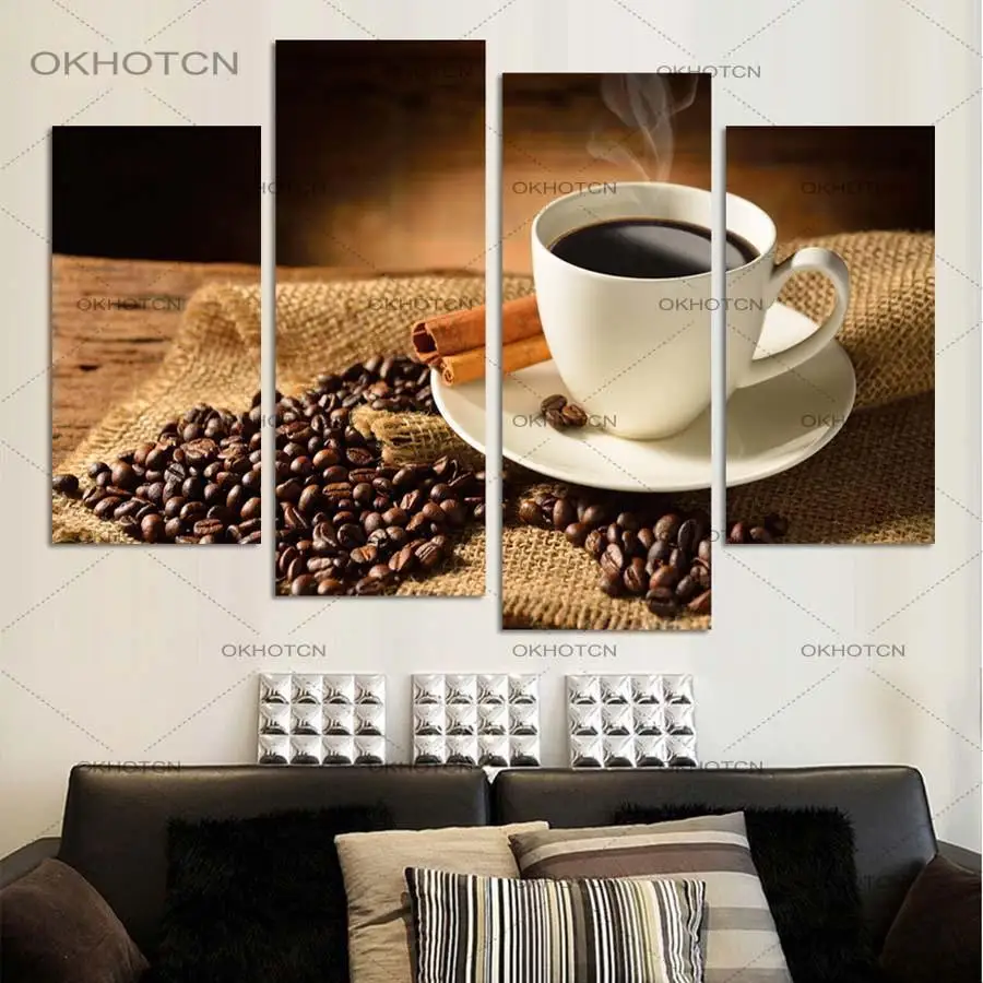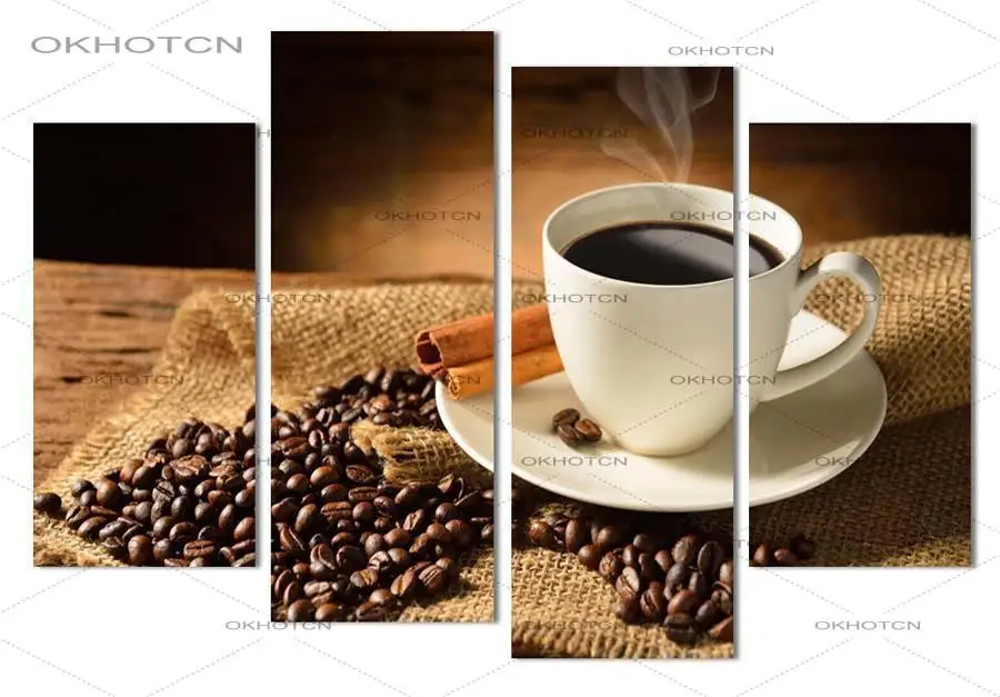 Картина на холсте без рамки, настенный плакат с художественной печатью, Модульная картина, кофе и зерен на столе, для кухни, комнаты, современный, Dec, 4 шт.