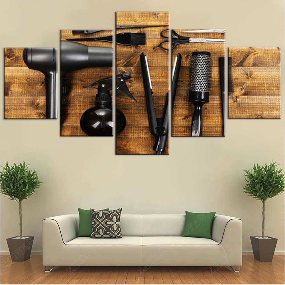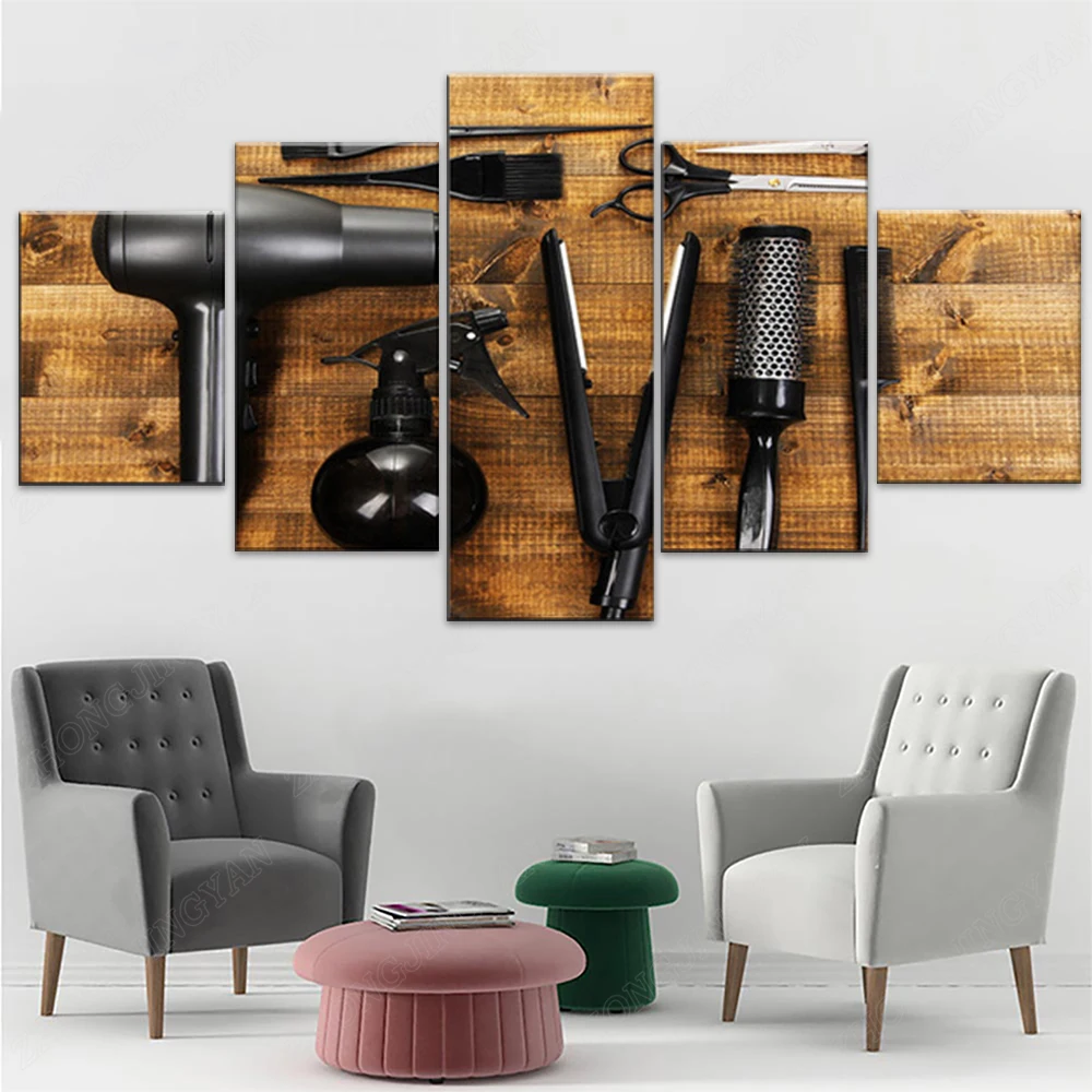 Современный парикмахерский инструмент парикмахерский салон с узором 5 панелей Холст Плакаты картины парикмахерский Декор настенная роспись