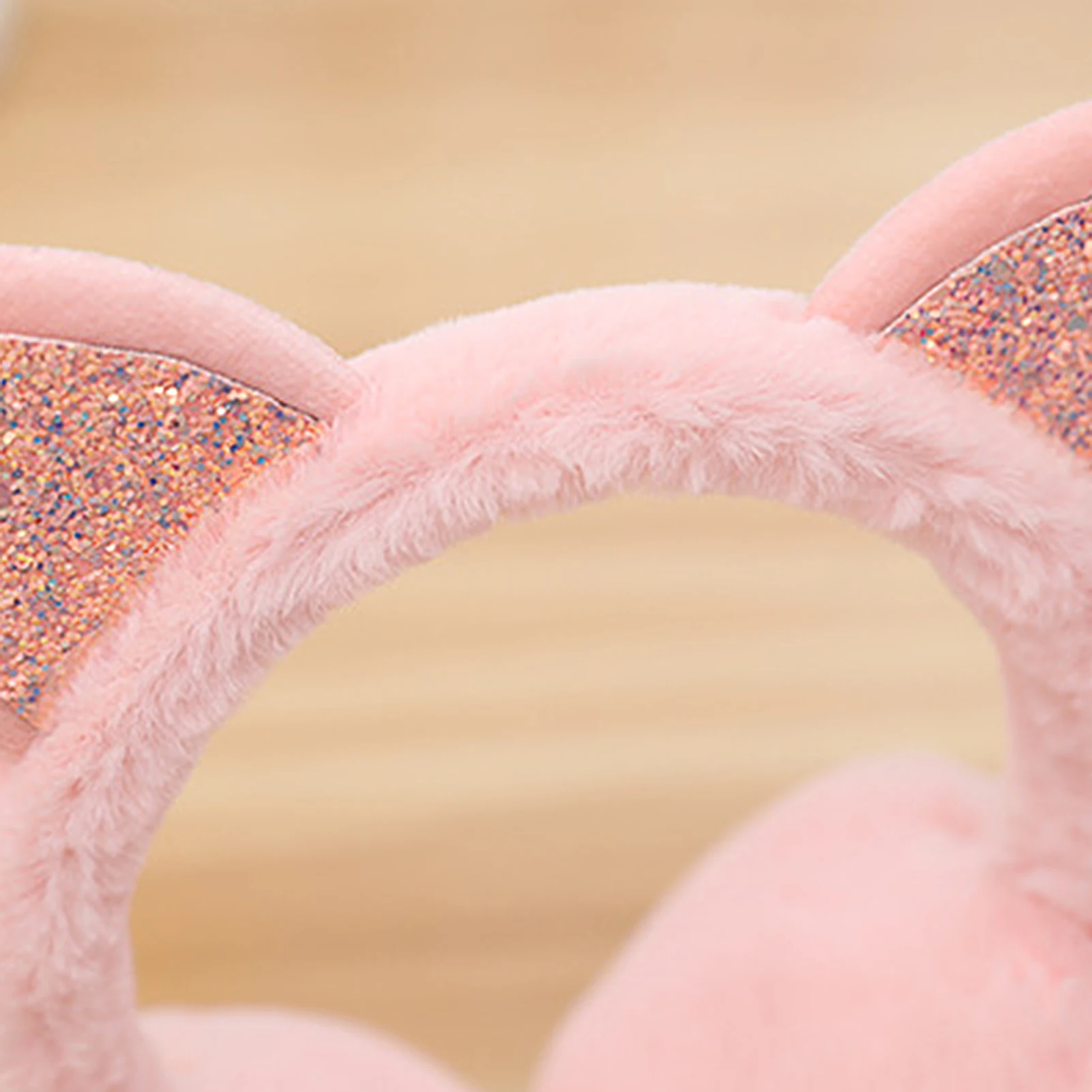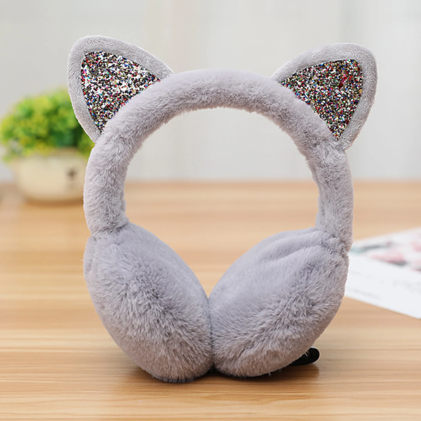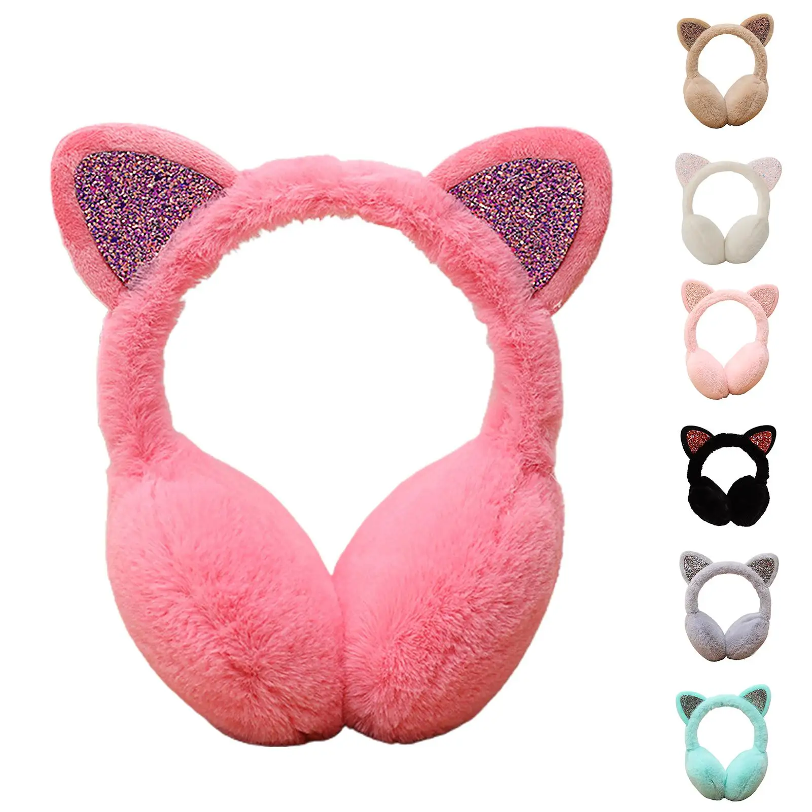 Женские милые зимние наушники с кошачьими ушами, блестящие наушники, защита от холода, теплые наушники, защитные наушники для улицы