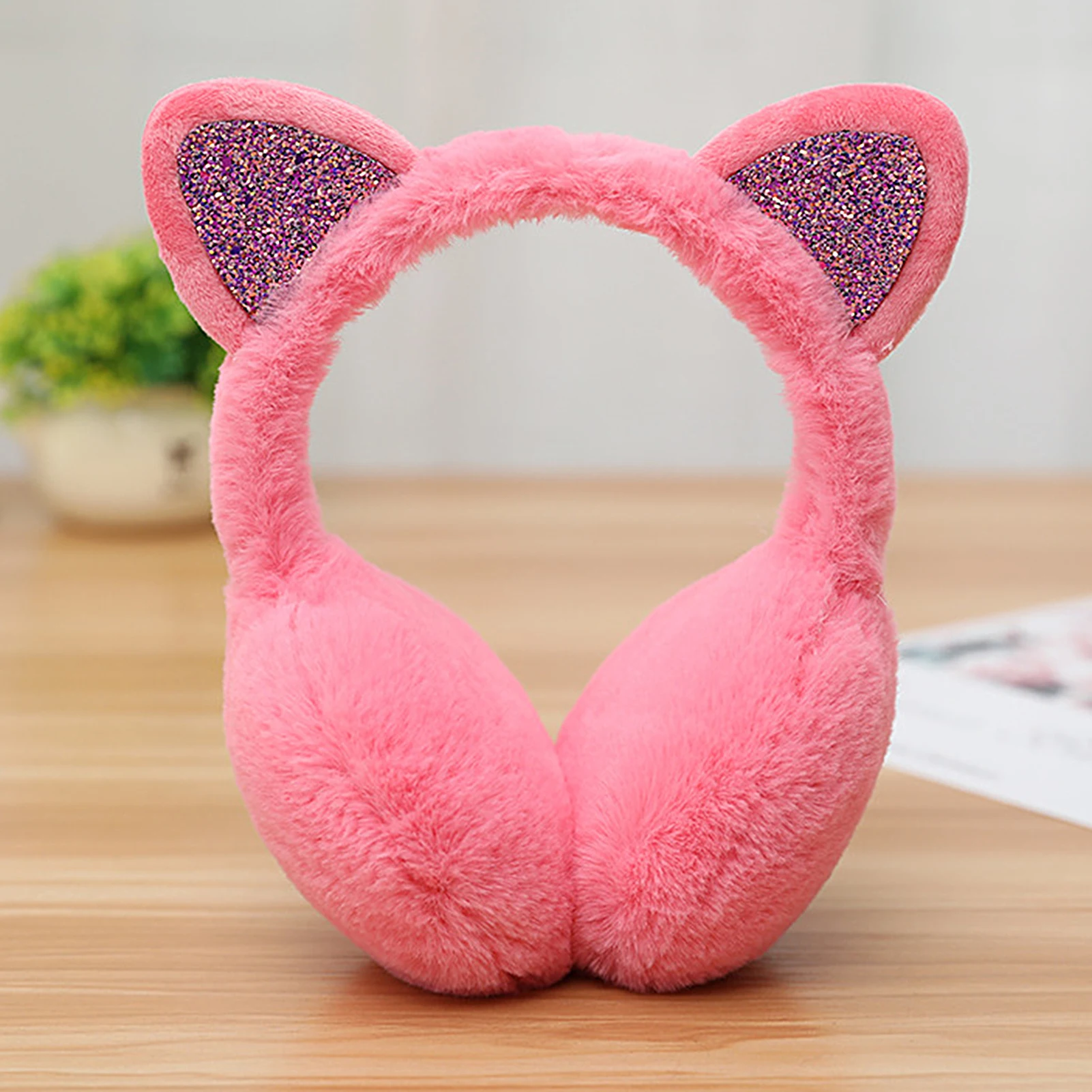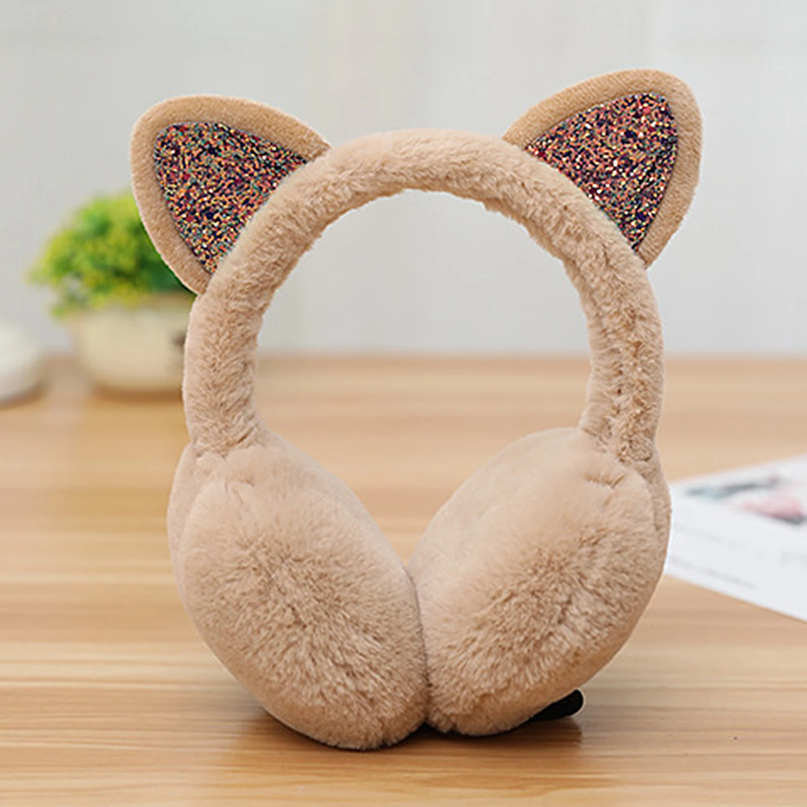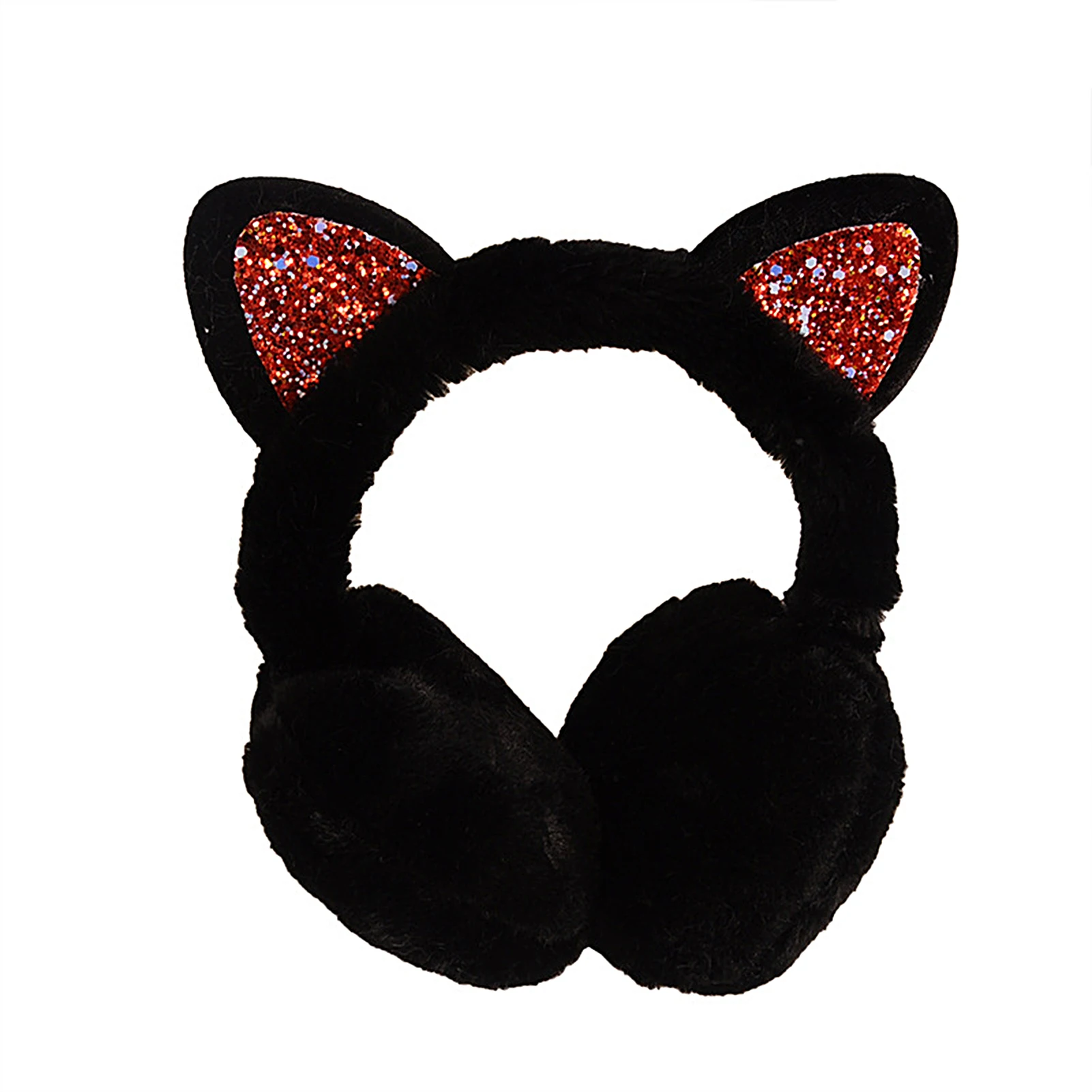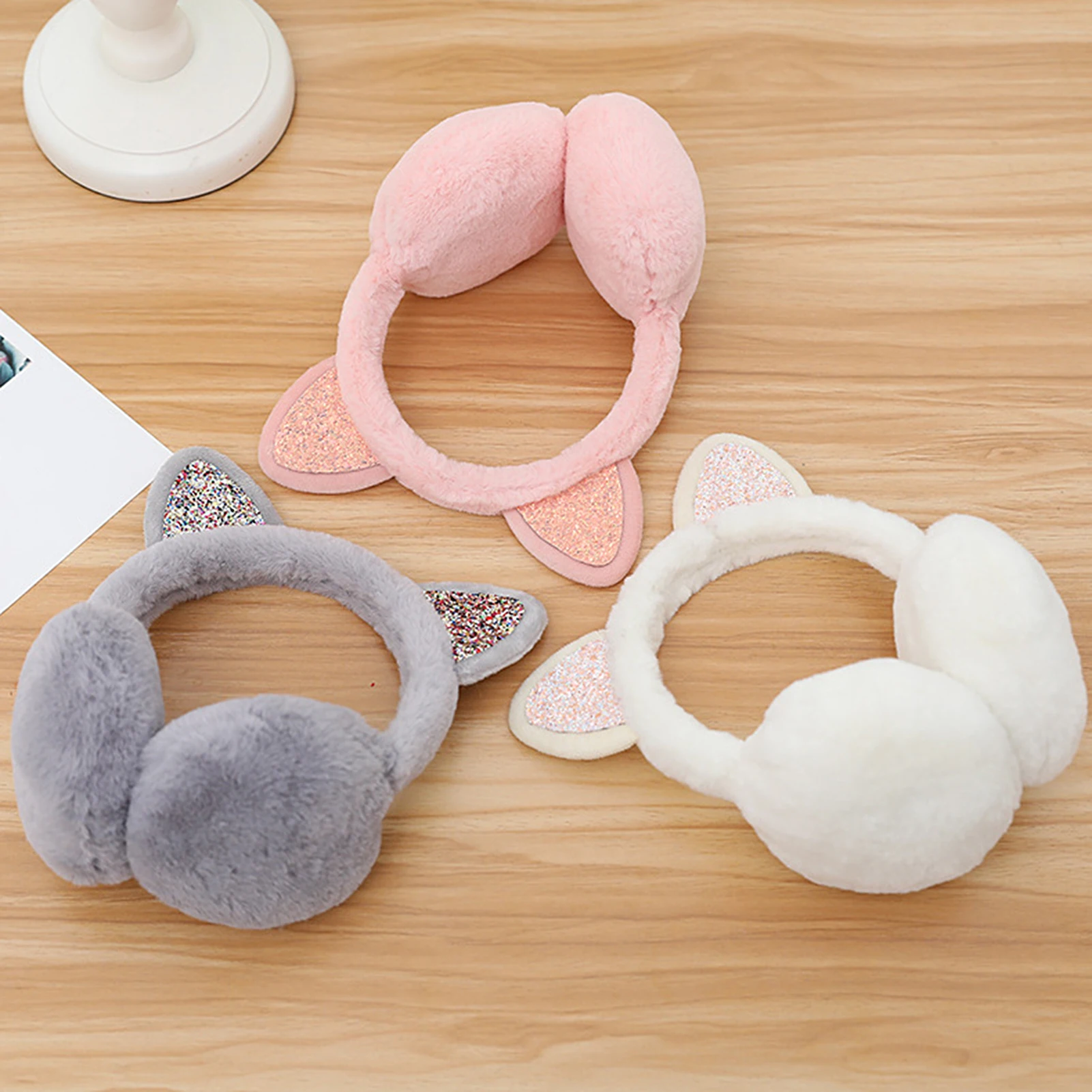 Женские милые зимние наушники с кошачьими ушами, блестящие наушники, защита от холода, теплые наушники, защитные наушники для улицы