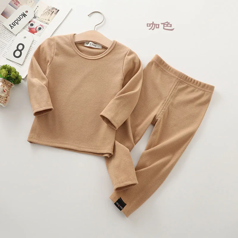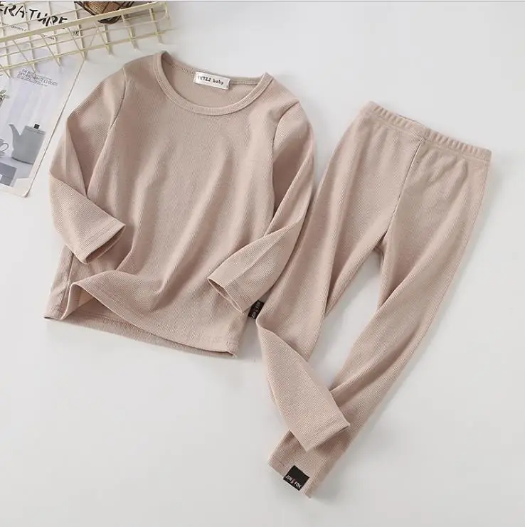 Новые пижамы в рубчик для маленьких девочек детская одежда для маль...