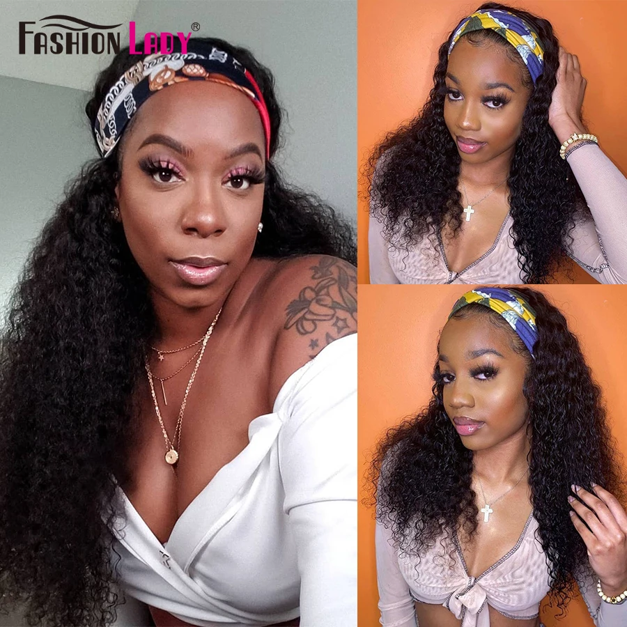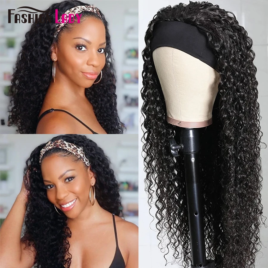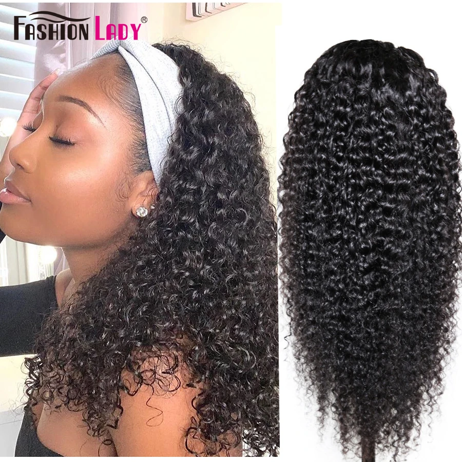 Парик-повязка на голову без клея, человеческие волосы, вьющийся парик для чернокожих женщин, модные женские волосы, бразильские волосы без повреждений, парики для женщин