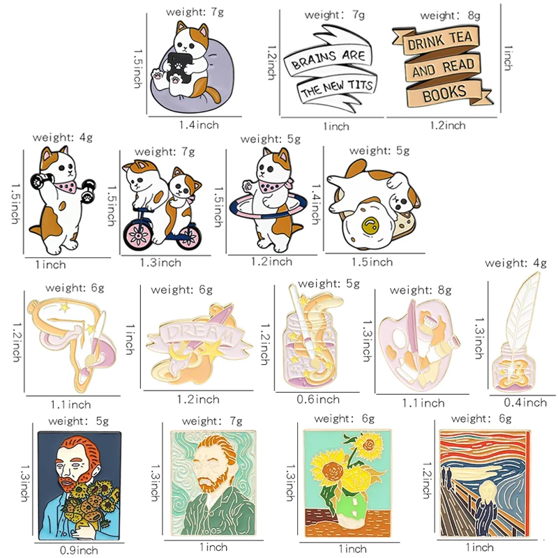 Кошки художник мечта масляная живопись эмалевые булавки крик Подсолнух Ван Гог палитра часы Забавный баннер кошка велосипед гантели Броши Je