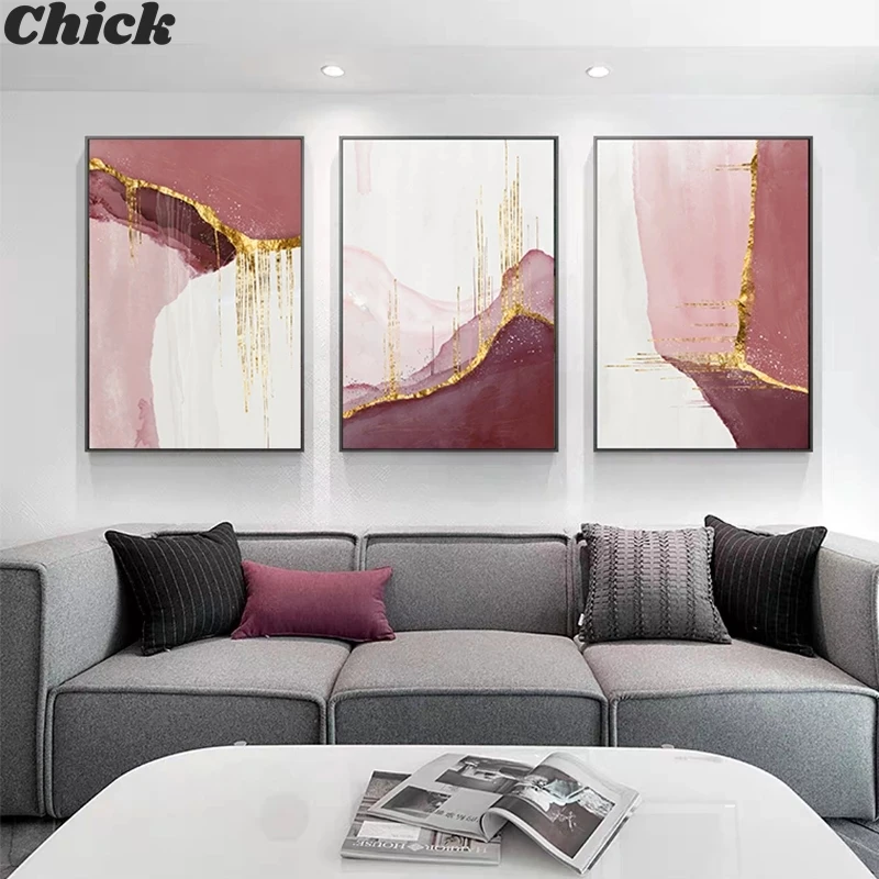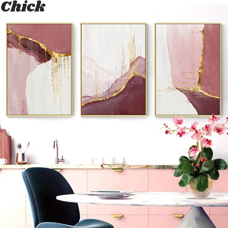 Абстрактная Золотая розовая Картина на холсте в скандинавском стиле цветные плакаты с принтом современные золотые настенные картины для гостиной спальни настенное искусство