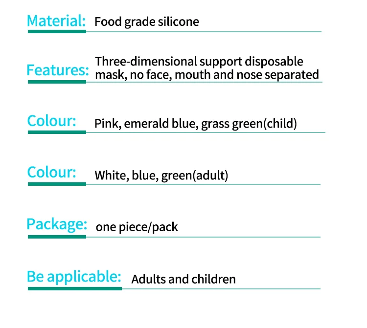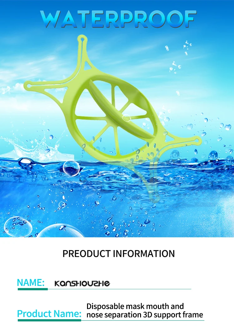 Флуоресцентный Точки пули: 1. Защитите свой макияж: Защитите Макияж лица и избегайте приклеивания помады к ткани. 2. Удобно носить очки: научный 3D стерео кронштейн, не тускнеет при ношении очков .. 3. Гладкое дыхание: подходит для дизайна лица переносицы, дыхание гладкое, дышащее и не душное. 4. Идеально подходит для лета: особенно подходит для летнего использования, тем самым расширяя пространство и помогая дышать плавно. 5. Маленький Наконечник: Этот продукт является 3D кронштейном и продукт не содержит другие продукты. Характеристики (о): Использование: подходит для лица, удобный и дышащий Флуоресцентный Способ ношения: Подвесные уши напрямую (ошибка) Наденьте одноразовую маску (правильно) ------------------------- Одноразовый держатель маски: супер силиконовый материал Комфорт признан домашним врачом 3D опора для разделения рта и носа До свидания! Влажное лицо! Очень удобно дышать Трёхмерный кронштейн не подойдет для носа и рта, не запотевает и дышит более комфортно, сразу превращается в KN95 --------------------- "Kanshouzhe" дает вам свежий воздух, который вы хотите (отклонить посредственность) Отдельный рот и нос, запатентованный продукт, мягкая посадка, моющаяся, легко устанавливается, независимая упаковка Полностью устраняет сырость, запах и непригодность, вызванные длительным использованием одноразовых масок Подходит для дизайна лица, поддержка 3D Научный дизайн, тонкий и дышащий, дышащий и не душный Защитите здоровое пространство вашей семьи Это может не допустить, чтобы маска была непосредственно прикреплена к