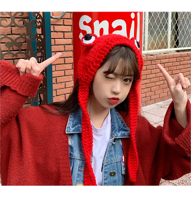Зимняя шапка Милая женская шляпа лягушки вязаная Шапочка костюм шапочки шапка подарок хип-хоп кепка для фотосессии вечерние костюмы для косплея