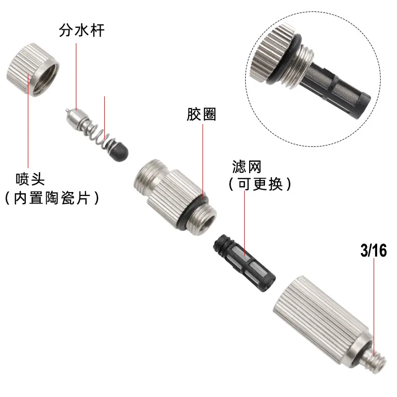 Распыляющая насадка высокого давления с фильтром, увлажнитель, распылительная головка для цветов, растений, теплиц, полива сада