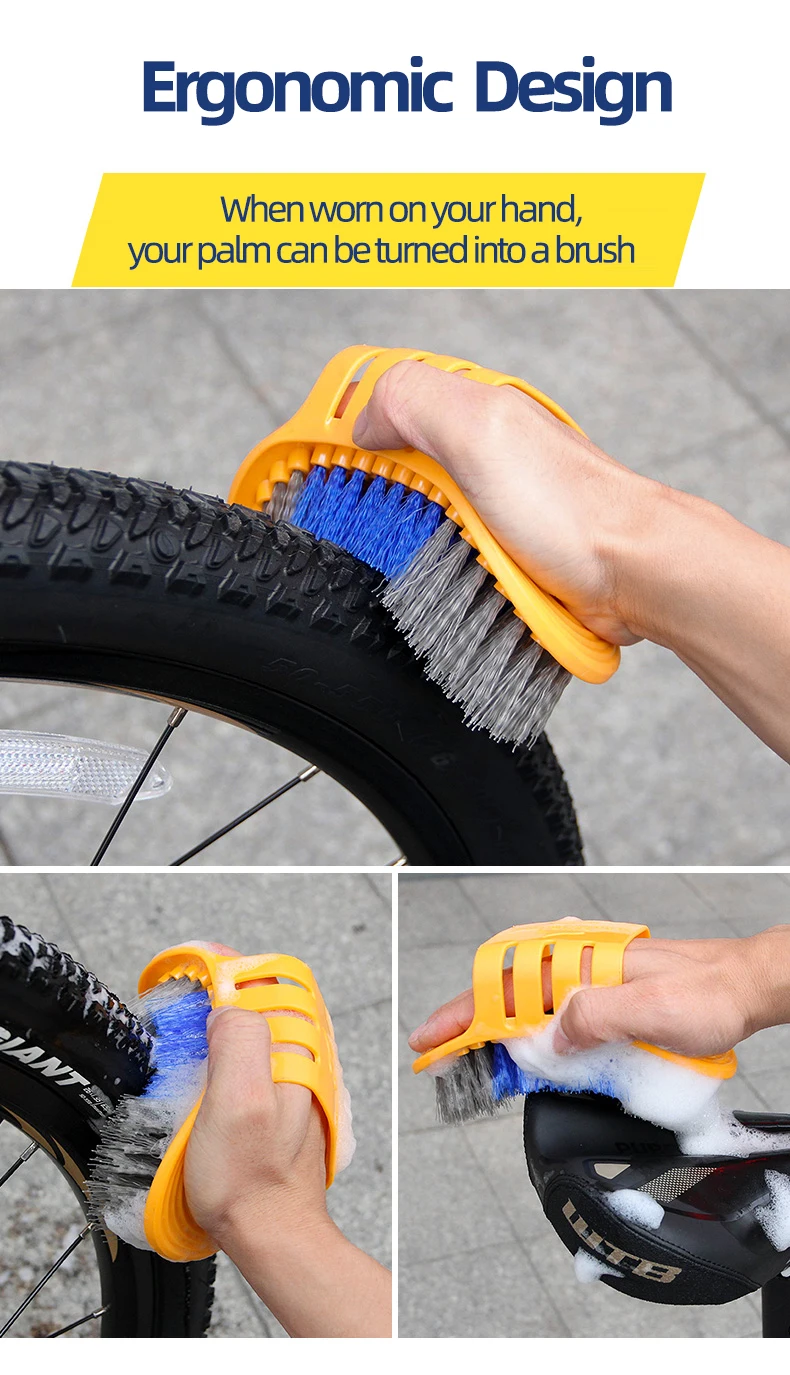 7 чистящие кисти инструменты для велосипеда, в том числе Профессиональная щетка для велосипедных шин + интегрированная щетка + угловая щетка + щётка + крючок для рулетки + перчатки из кораллового флиса + мойка велосипедной цепи