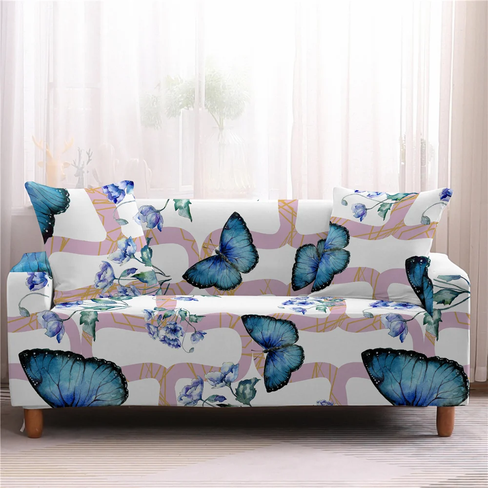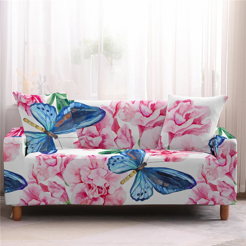 Растягивающийся чехол для дивана, современный нескользящий чехол из спандекса с цветочным принтом, с бабочкой, подходит для гостиной, мебели