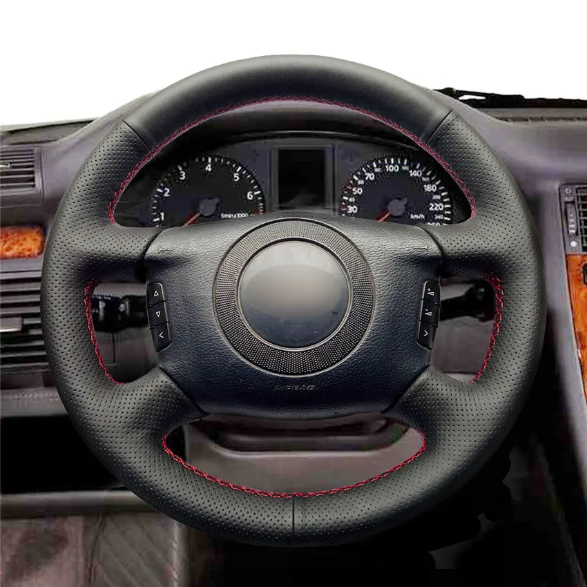 Рука сшитый черный PU Искусственная кожа Чехол рулевого колеса автомобиля для Audi A2 (8Z) A6 (C5) Avant A8 (D2) S4 2003 2004 2005