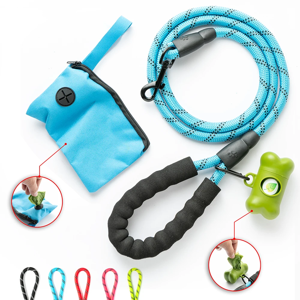 Набор светоотражающих поводков для собак, с дозатором мешка для собачьих какашек и сумкой для корма для дрессировки собак, для домашних животных, для маленьких, средних и больших собак, товары для домашних животных