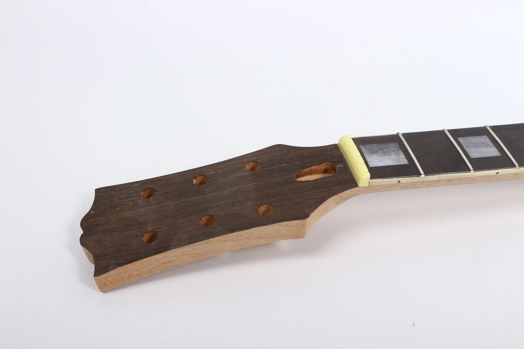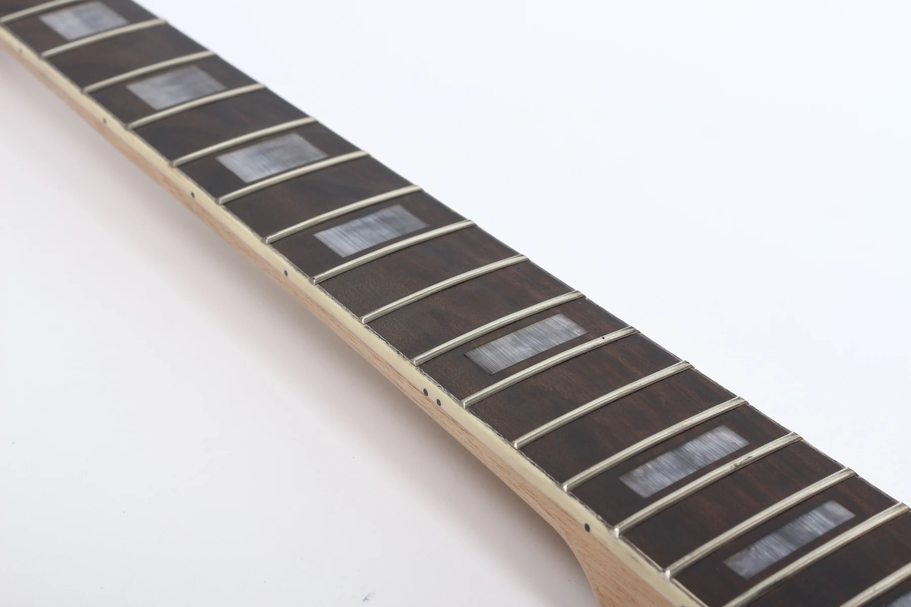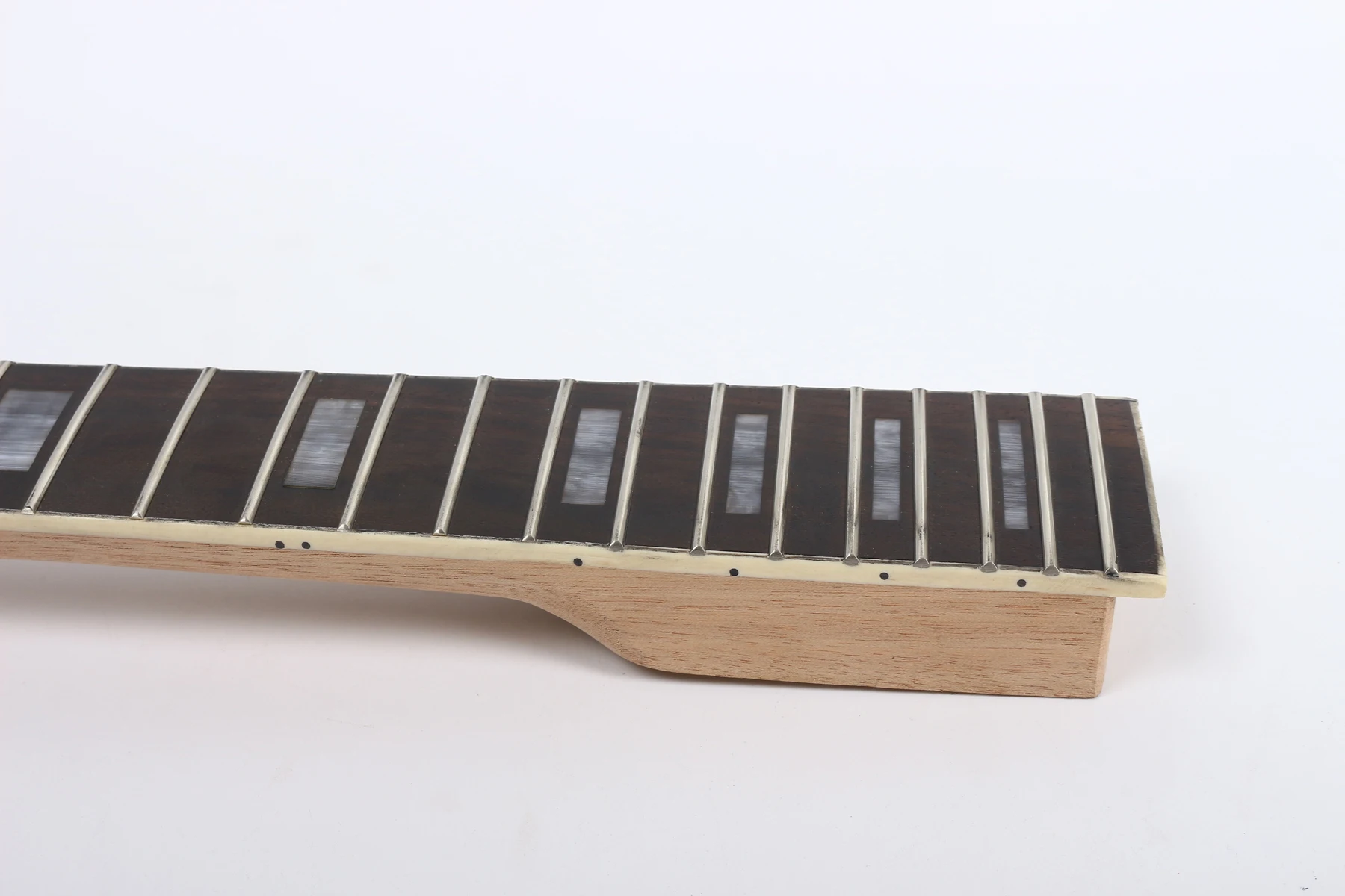 Подходит для Diy электрогитары или шеи Замена Древесина шеи: красное дерево Древесина грифа: розовое дерево Отделка: незаконченная Ширина в области пятки: 56 +-0,5 мм Лады: 22 никель/Серебро Лады 24,75 дюйма 42 мм ширина гайки 56 мм Ширина каблука