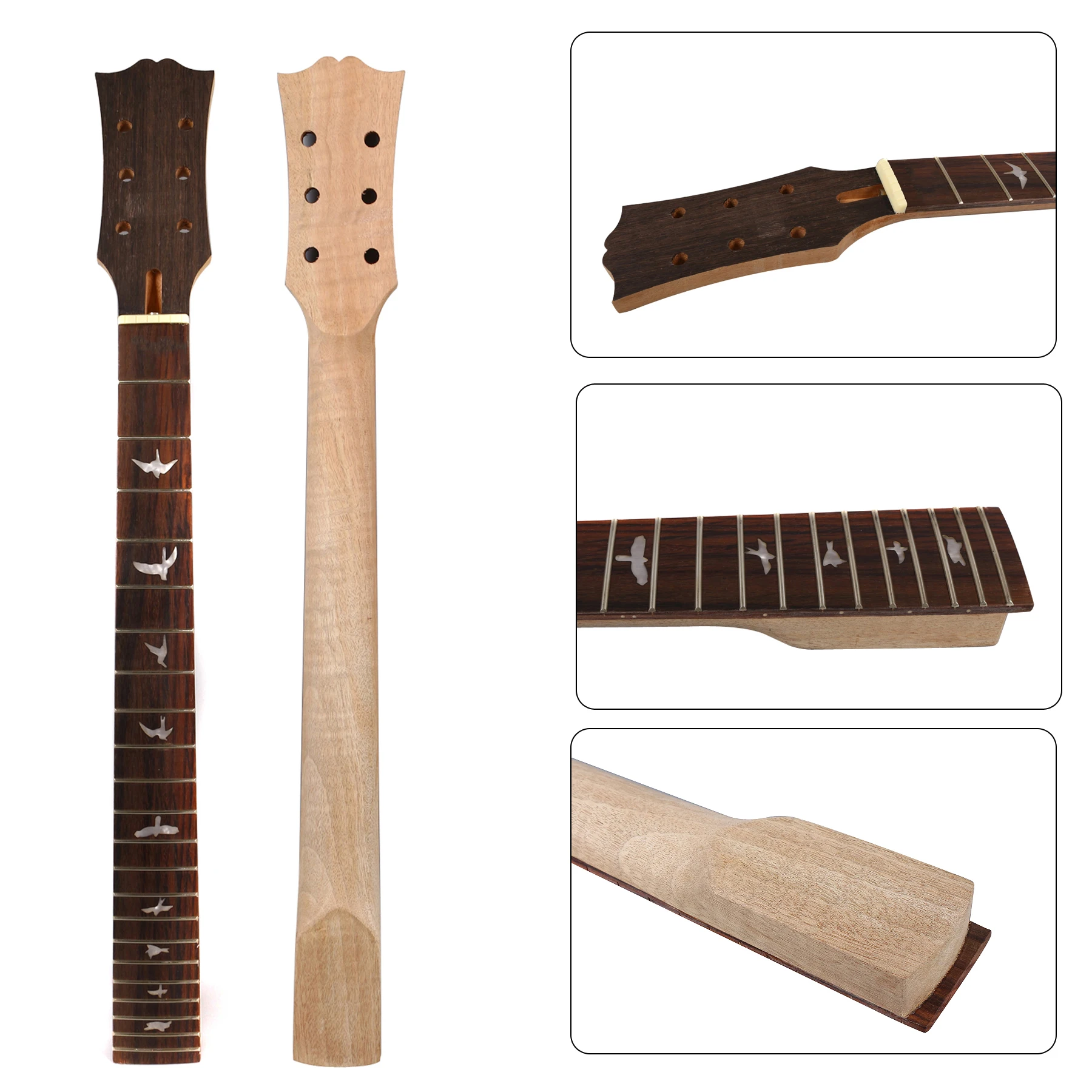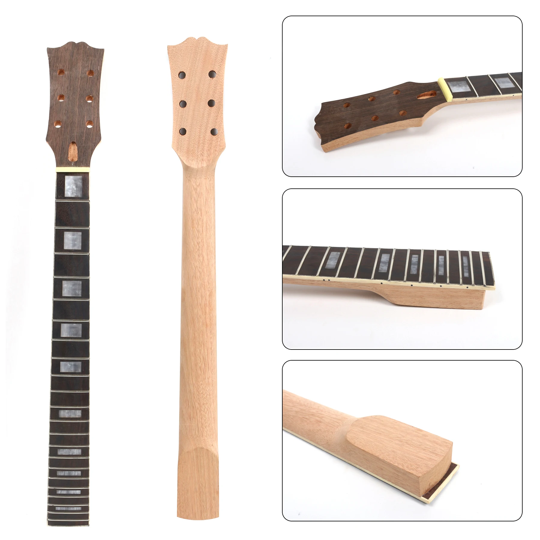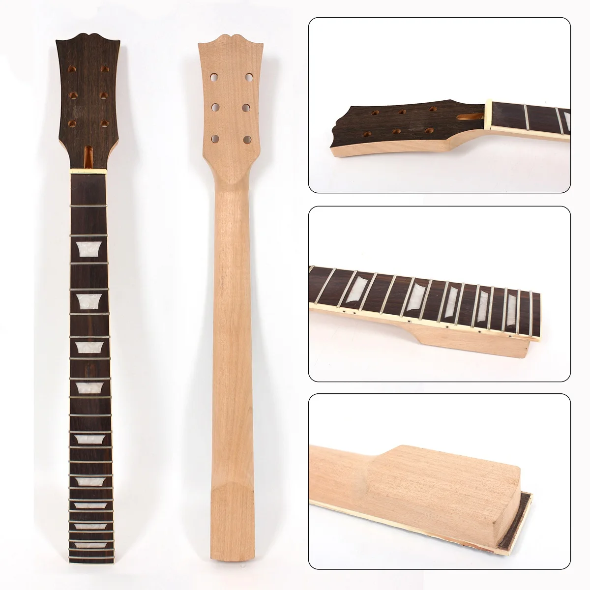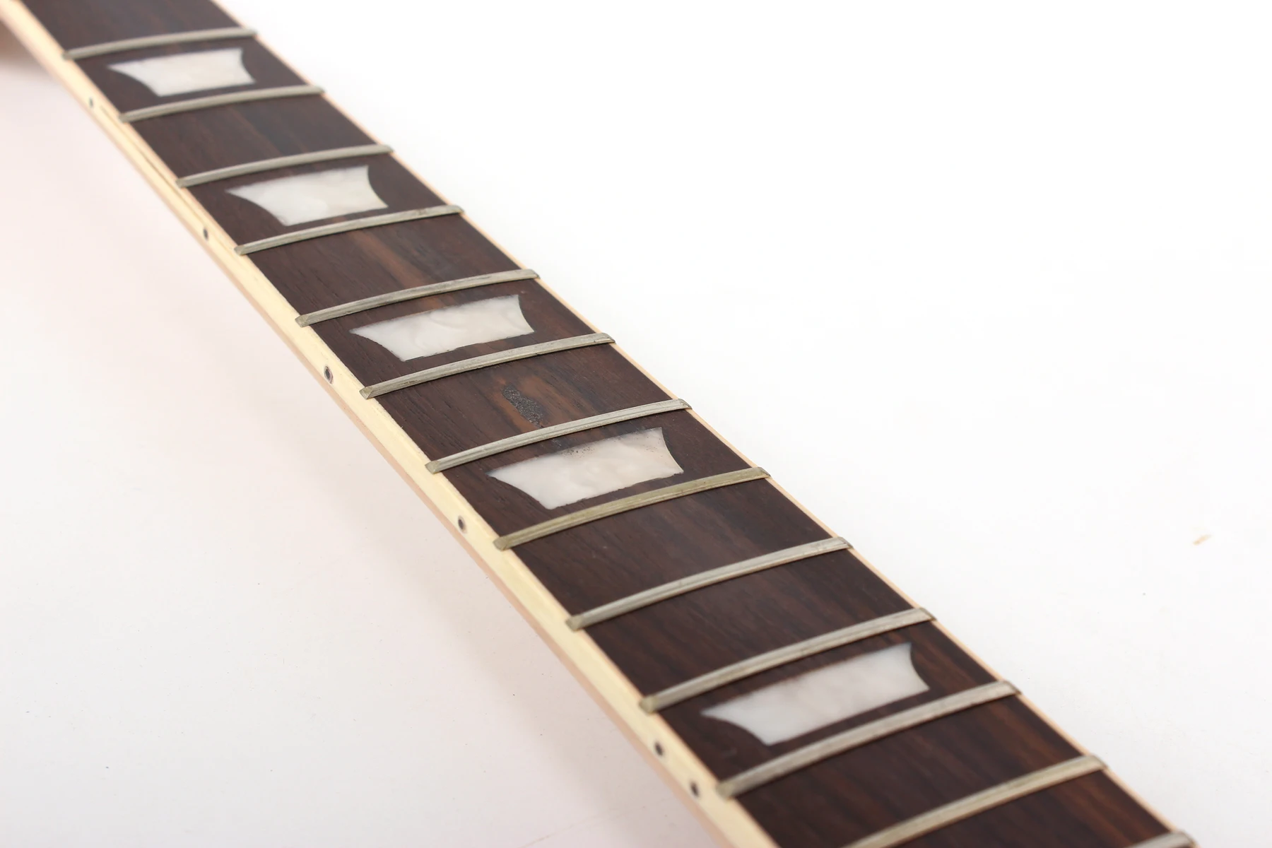 Подходит для Diy электрогитары или шеи Замена Древесина шеи: красное дерево Древесина грифа: розовое дерево Отделка: незаконченная Ширина в области пятки: 56 +-0,5 мм Лады: 22 никель/Серебро Лады 24,75 дюйма 42 мм ширина гайки 56 мм Ширина каблука