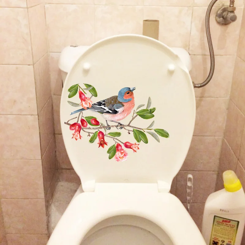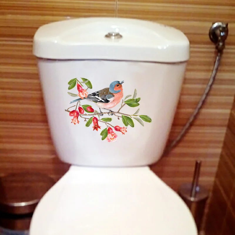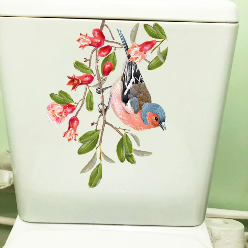 ZTTZDY 24,9 см 18,7 см ветка цветка граната крышка унитаза Декор растение птица домашняя комната наклейки на стену T2-0929