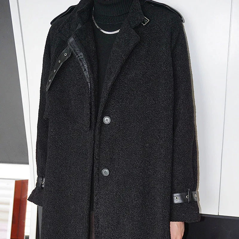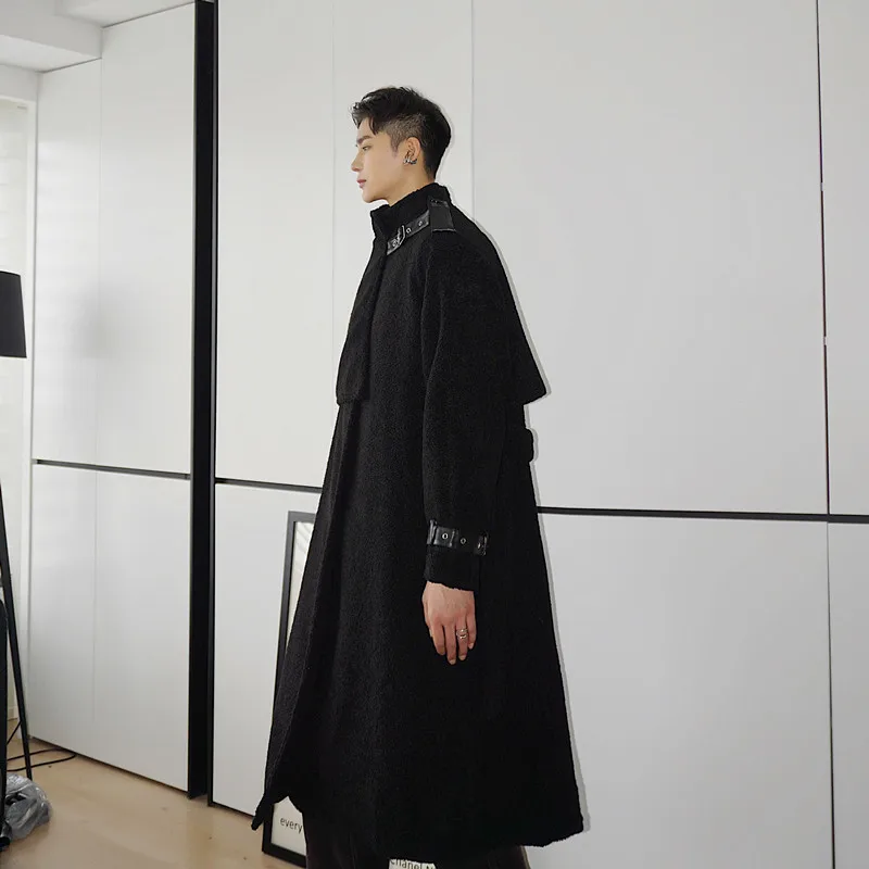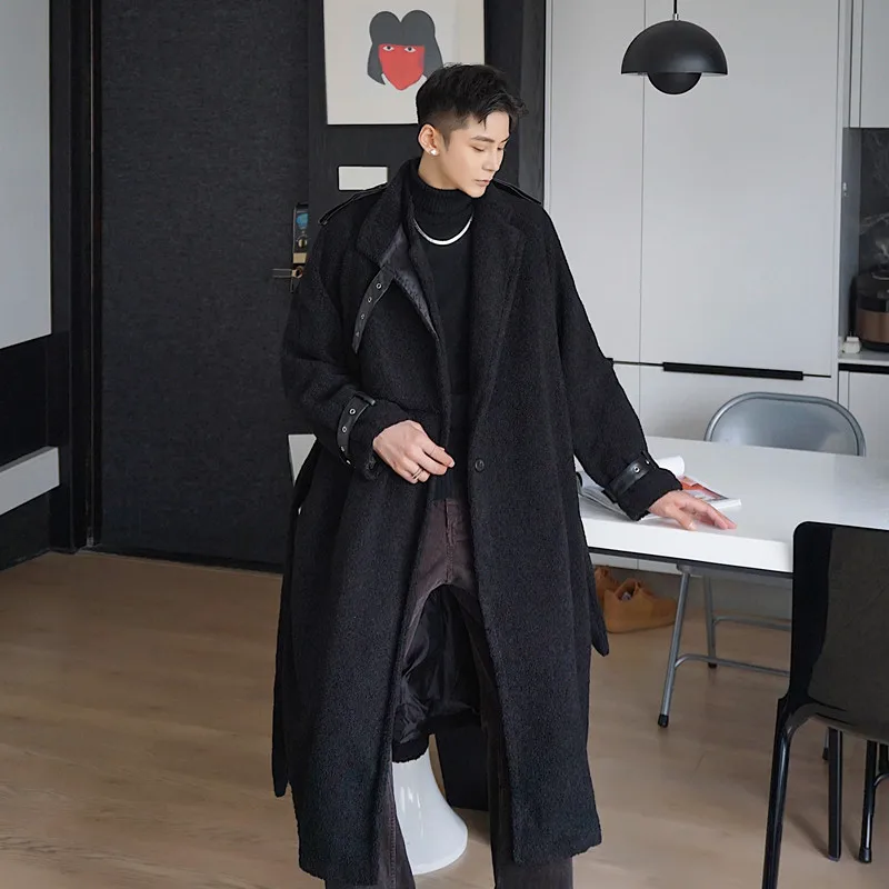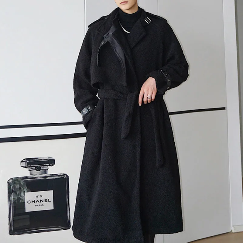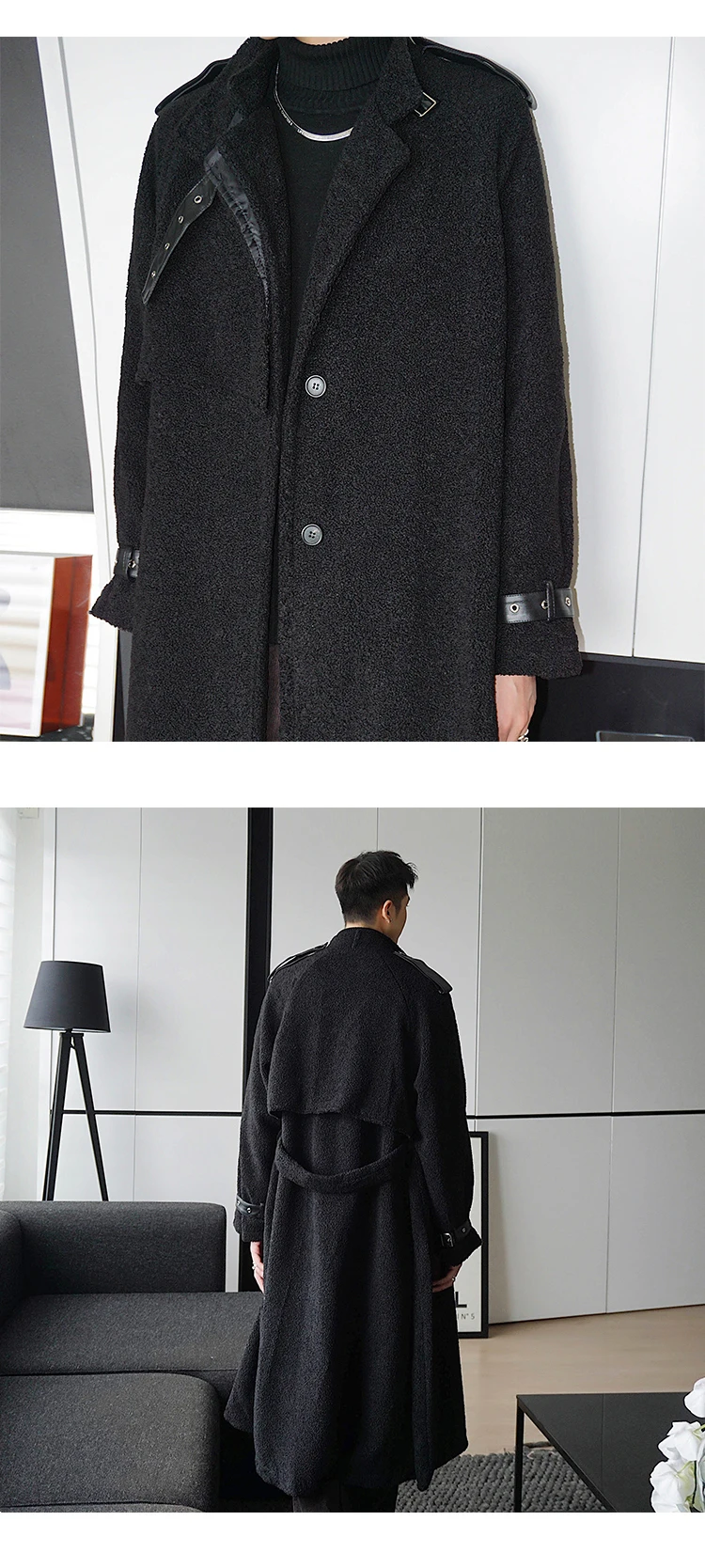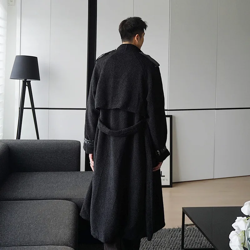 Тренчкот мужской зимний из искусственной овечьей шерсти с поясом