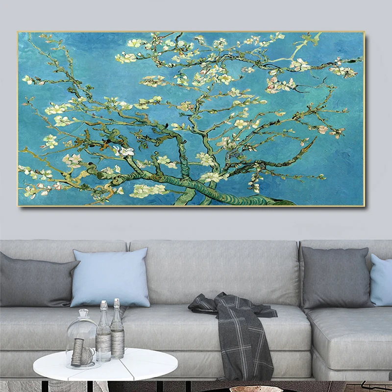 Картина Винсента Ван Гога, синее цветущее миндальное дерево, большая масляная живопись на холсте, постер, печать на стене, картины для гостиной