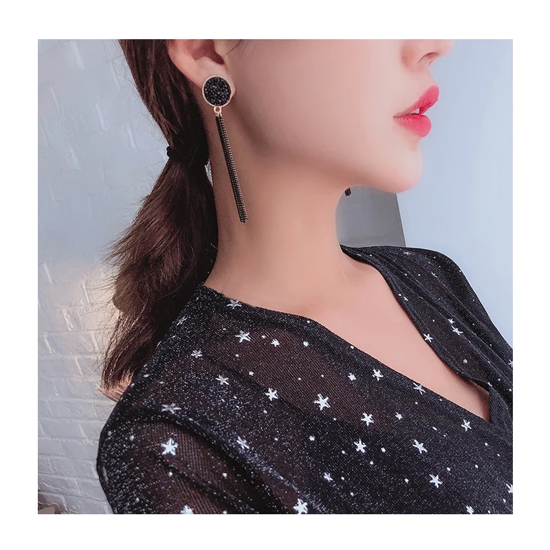 Женские длинные сережки в Корейском стиле, черные сережки со страза...