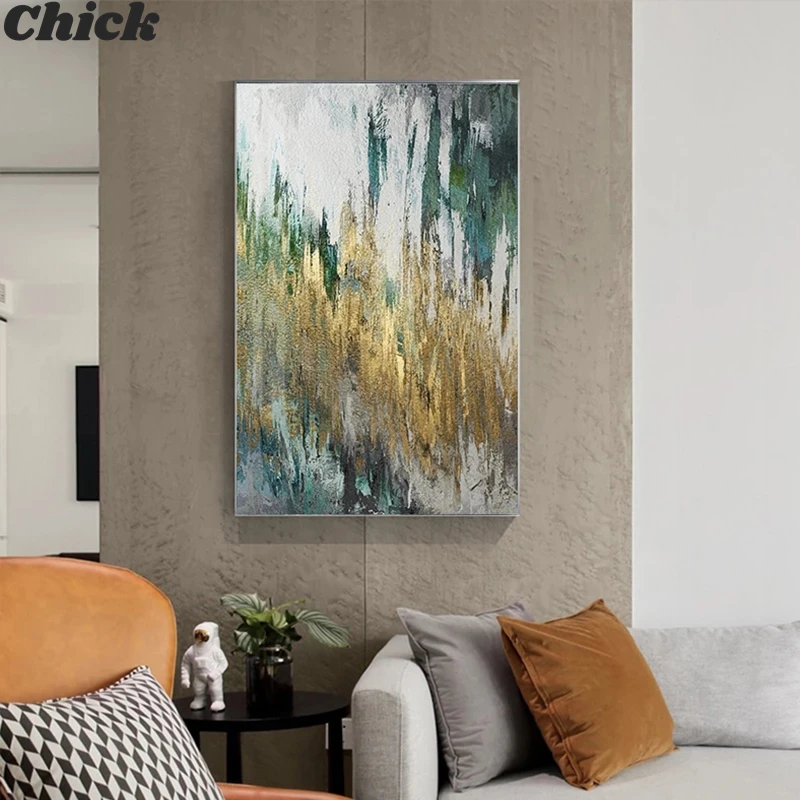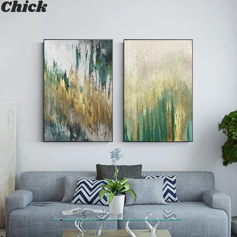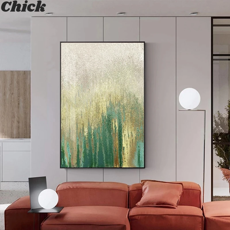 Абстрактная зеленая и желтая живопись, современное художественное полотно, модная Настенная картина для гостиной, большой зеленый плакат, печать, украшение для дома