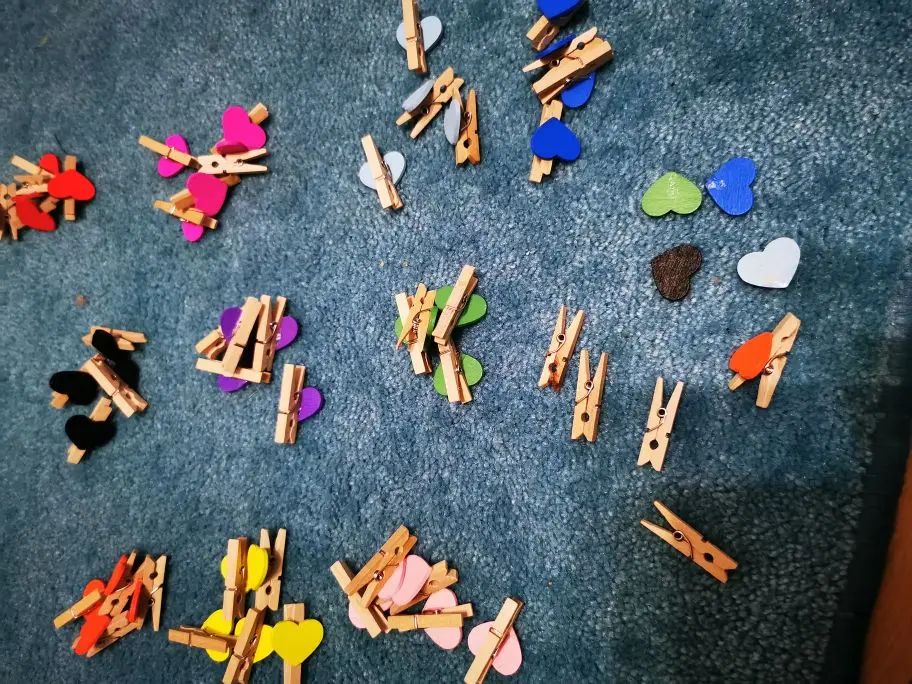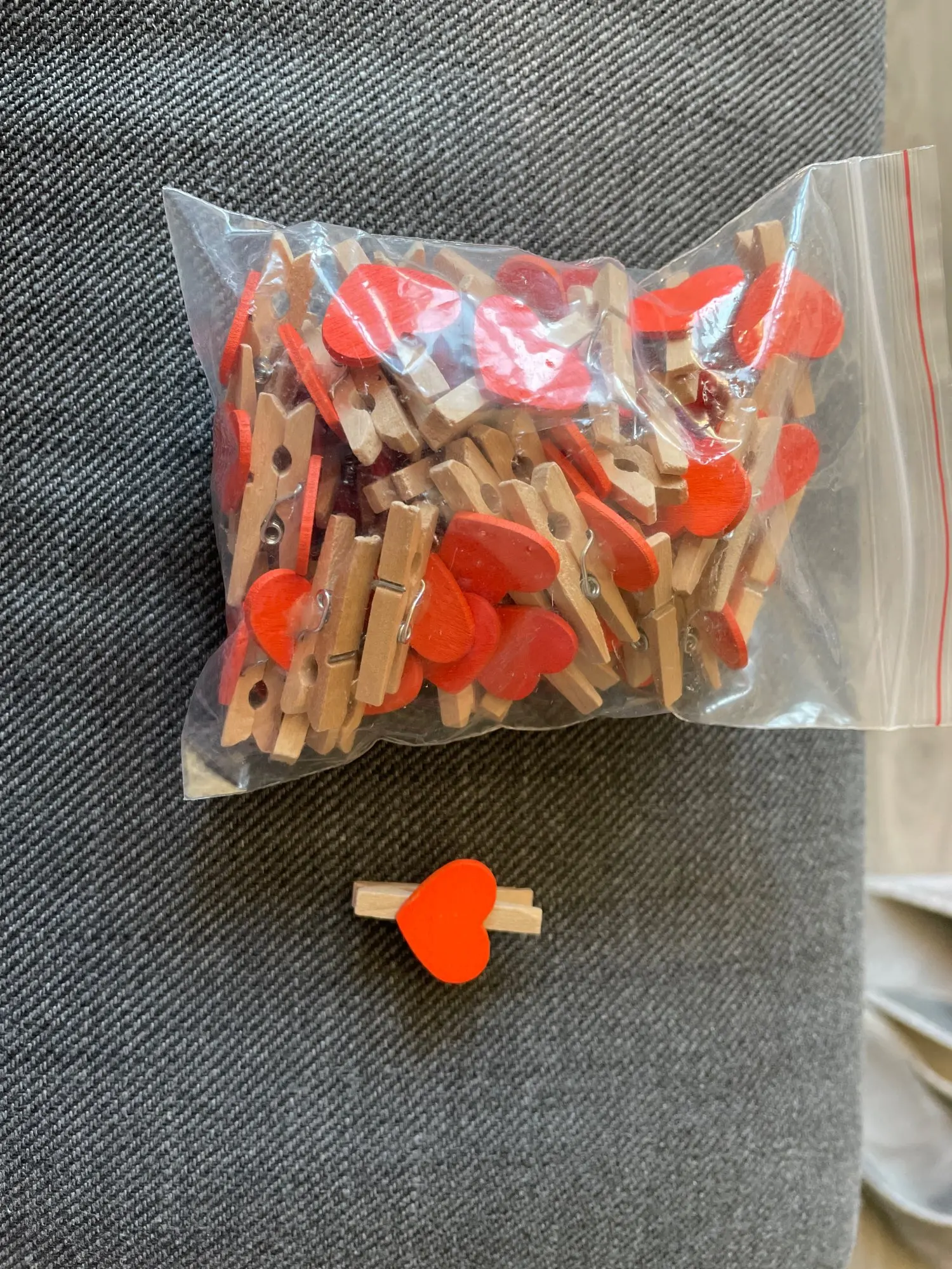 Las pedí de color rojo y han llegado de múltiples colores... En la descripción dice 'Pinzas de madera con forma de corazón rojo' pero no es correcto. El envío ok