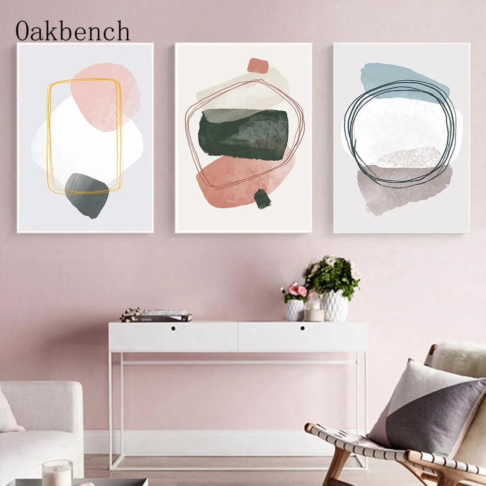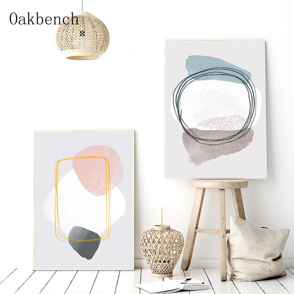 Абстрактная настенная живопись геометрический Холст плакат цветной блок настенный художественный принт скандинавские плакаты и принты Декор для гостиной картина