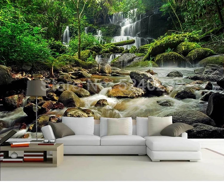 Пользовательские 3D фотообои водопад зеленый природный пейзаж Большая фреска Кабинет гостиная спальня настенные бумаги домашний Декор современный
