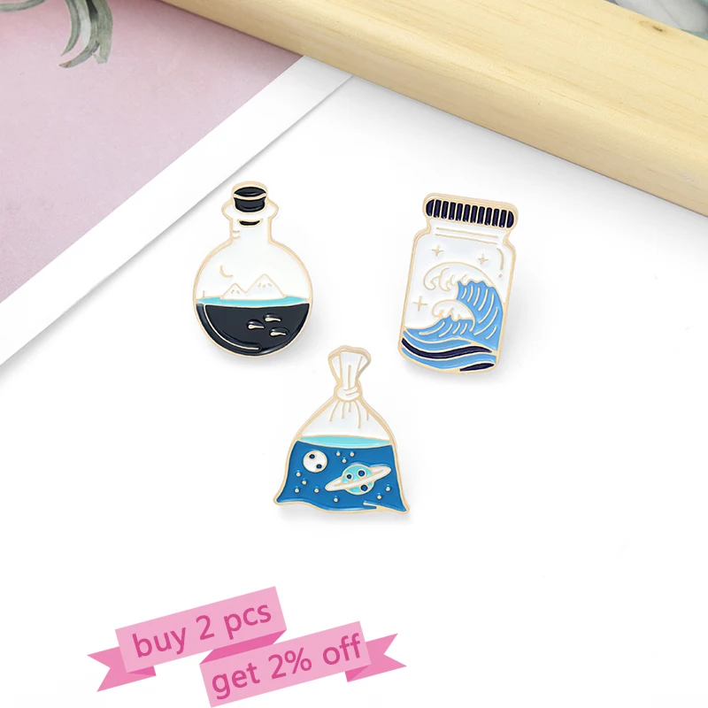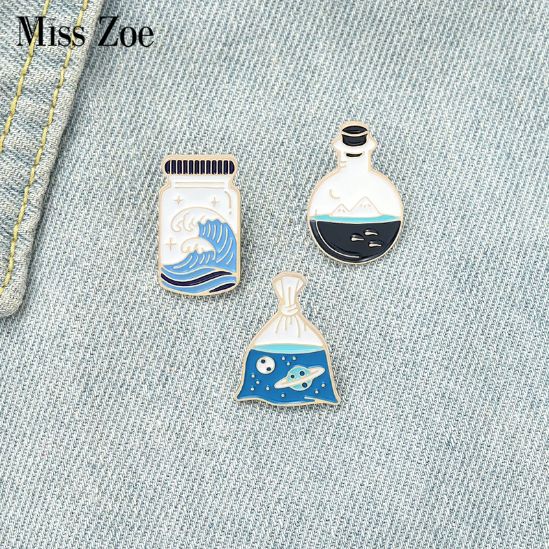 Эмалевая заколка с голубой природой на заказ, мешочек для брошек значок для океана, гор, Вселенной, на лацкан, милый мультяшный значок, ювелирное украшение, подарок для детей и друзей