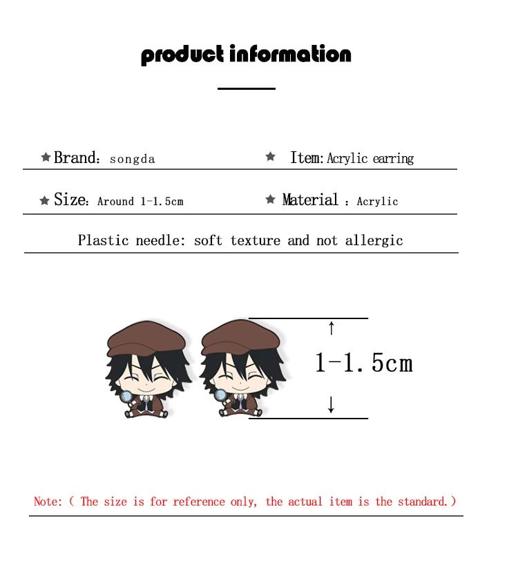 Серьги-гвоздики с персонажами аниме бродячие псы, акриловые, в эпоксидной смоле, милые аксессуары, модный подарок для детей и фанатов, Новое поступление