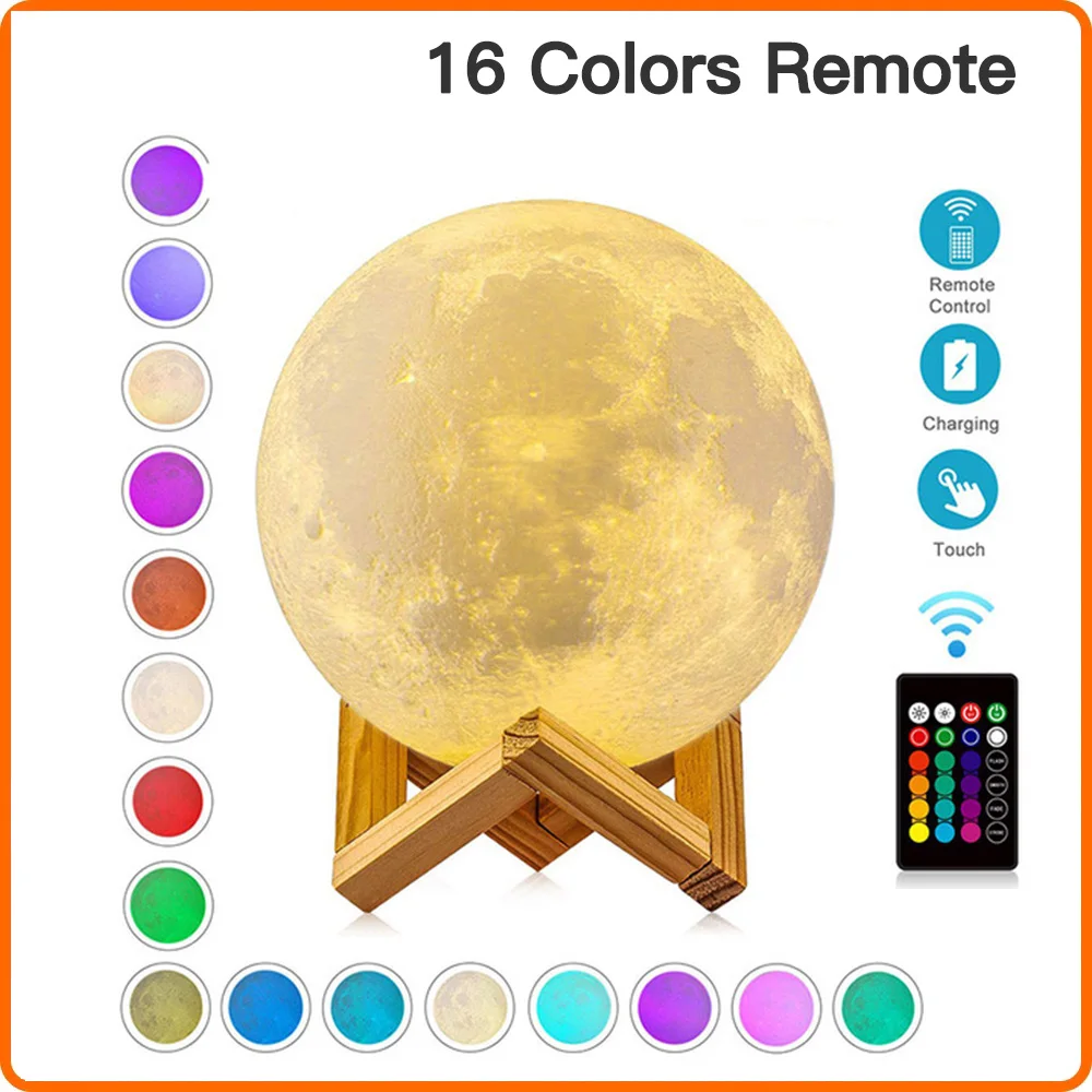 DENGSUM 3DPrint Moon лампа перезаряжаемая с пультом дистанционного ...