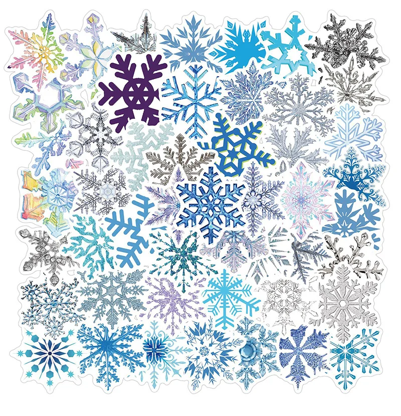 50 шт. в упаковке; Принт в виде снежинок наклейки эстетика для стекла ноутбука СКЕЙТБОРД гитара Водонепроницаемый аниме машины детские игрушечные этикетки Рождественский подарок