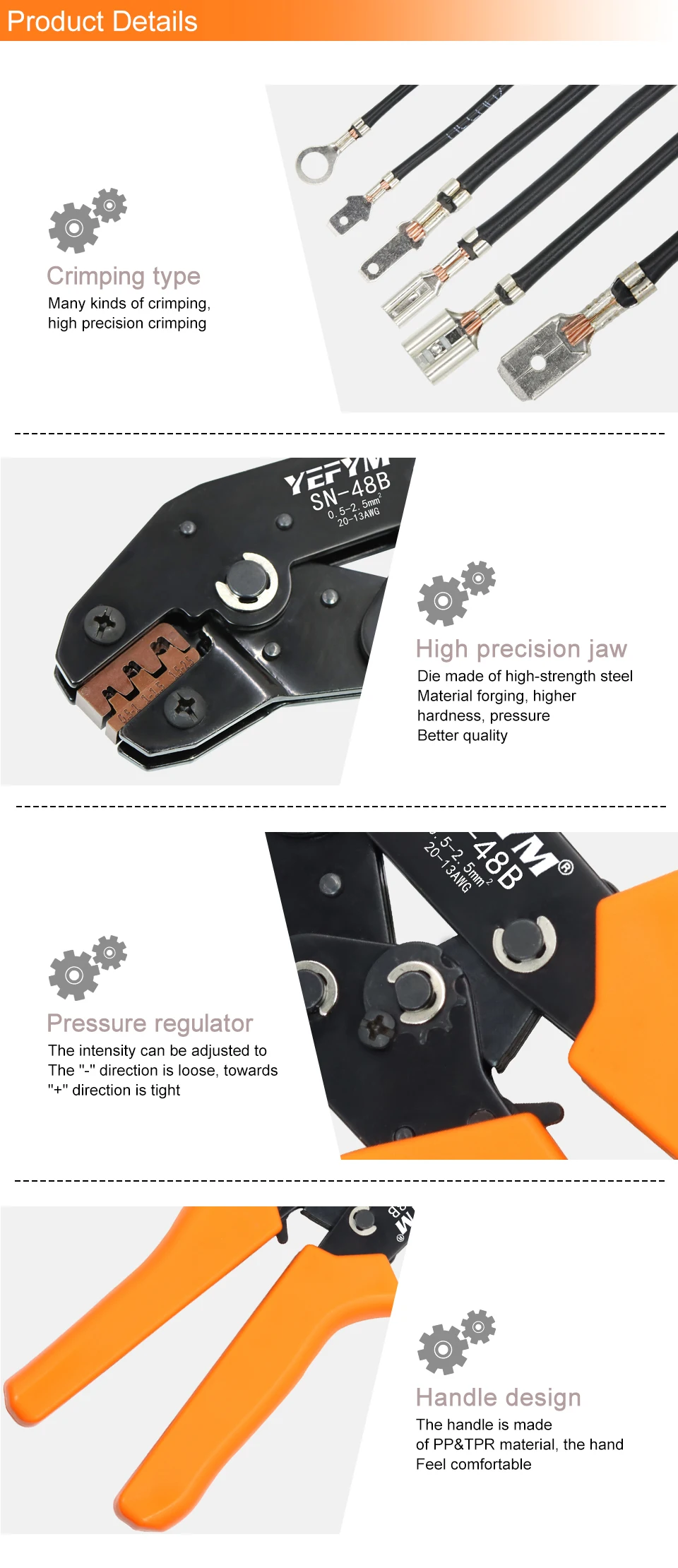 Клещи обжимные YEFYM SN-48B, 0,5-2,8 мм, высокоточные, с язычком 4,8, автомобильные клеммы, 6, 3, наборов проводных электрических ручных инструментов