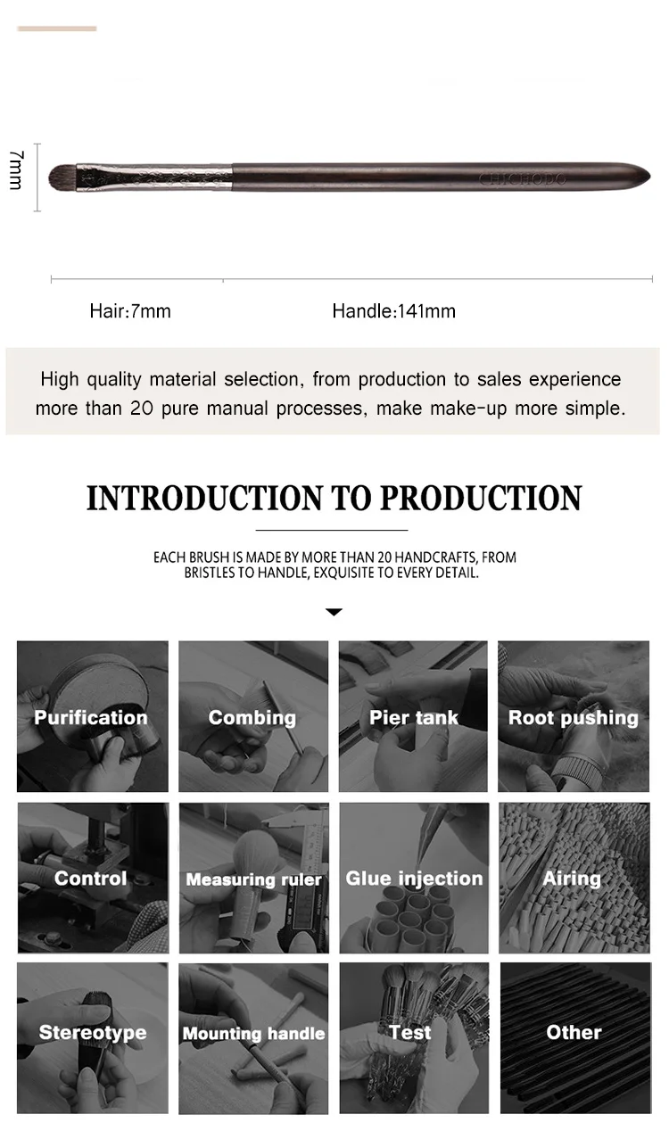 Ручка: Эбеновое деревоВолосы: Коза, пониТрубка: лазерный резной алюминиевый кубДлина волос: 7 ммШирина волос: 7 ммОбщая длина: 149 ммВес: 6,4 г