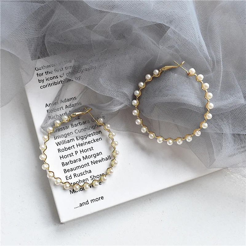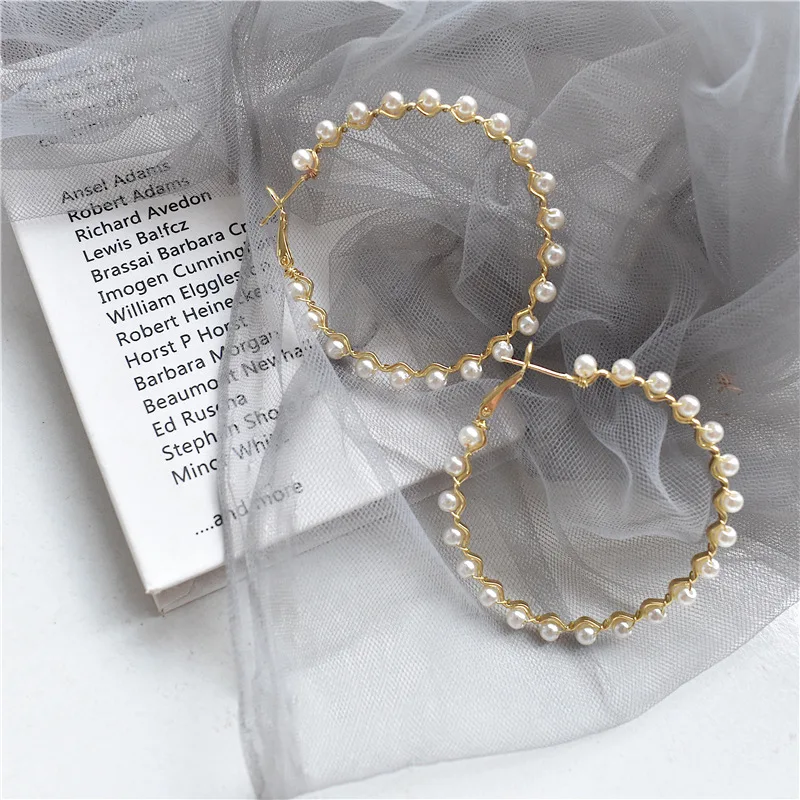 Большие серьги-кольца с жемчугом женские серьги P2020 эффектные ювелирные изделия