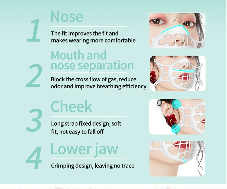 ----------------------------------- Пулевые точки: 1. Защита макияжа: может защитить Макияж лица и избежать прилипания помады к ткани. 2. Удобно носить очки: научный 3D стерео кронштейн, не Запотевают при ношении очков .. 3. Разгладьте дыхание: подходит для дизайна лица переносицы, дыхание более плавное, дышащее и не душное. 4. Идеально подходит для лета: особенно подходит для летнего использования, тем самым расширяя пространство и помогая дышать ровно. 5. Небольшой совет: это изделие представляет собой 3D Кронштейн и изделие не содержит других продуктов. Технические характеристики (примерно): Использование: подходит для лица, удобный и дышащий ------------------------------------------- Способ ношения: Висячие уши напрямую (ошибка) Носить на одноразовой маске (правильный) ---------------------------- Одноразовый держатель для маски: супер силиконовый материал Комфорт признан отечественным медицинским персоналом Опорная 3D оправа для разделения рта и носа До свидания! Влажное лицо! Дышать очень комфортно Объемная скоба не подойдет для носа и рта, откажется задохнуться, и дышать комфортнее, сразу трансформируется в KN95 ----------------------- "Kanshouzhe" дарит вам свежий воздух, который вы хотите (отвергайте посредственность) Отдельный рот и нос, запатентованный продукт, мягкая посадка, моющийся, простой в установке, независимая упаковка Полностью устраняет сырость, запах и отсутствие прилегания, вызванные длительным использованием одноразовых масок Подходит для лица, поддержка 3D Пропорциональный дизайн, тонкий и дышащий, дышащий и не душный Защитите здоровое пространство вашей семьи Это может предотвратить, чтобы маска была непосредственно прикреплена к