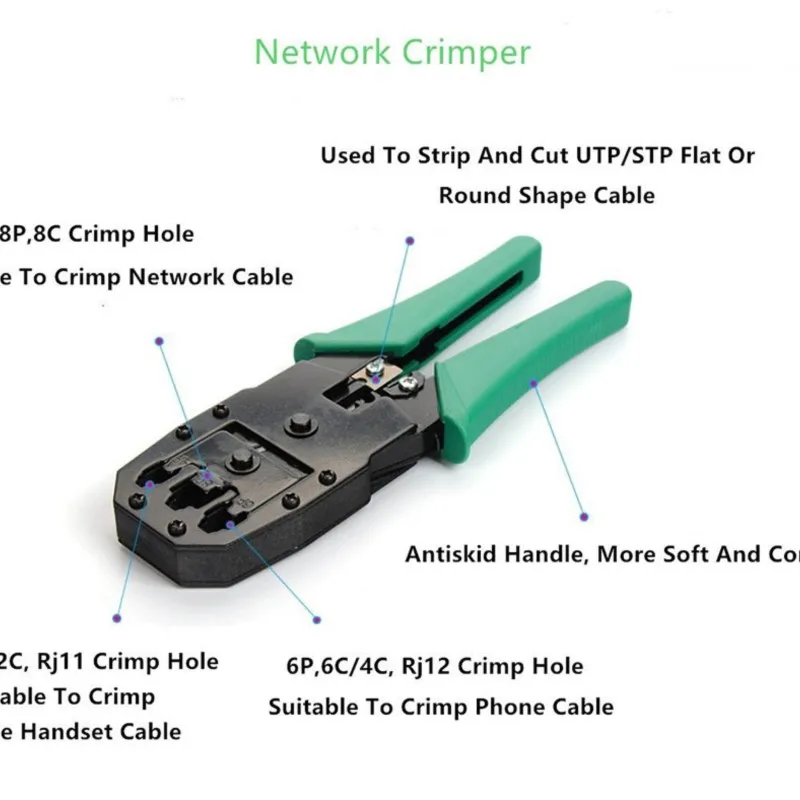 Особенности: Полные инструменты для обслуживания сети, удобные для вашей работы; Профессиональные Сетевые щипцы, экономят время и усилия, значительно улучшают эффективность работы; Многофункциональный тестер кабелей для тестирования телефонных или сетевых кабелей; Портативная и удобная сумка для инструментов для переноски повсюду. Посылка включает в себя: 1 x щипцы для кабеля: Подходит для кабеля Cat5, Cat5e и Cat 6 с вилками 8P8C; Отлично подходит для установки кабеля и телефона и любых других электрических проводов. 1 сетевой тестер: Может протестировать соответственно двойные витые кабели 1, 2, 3, 4, 5, 6, 7, 8 и G, между тем, может определить неправильное соединение, короткое замыкание и открытую цепь. 1 x резак для зачистки проводов: 1 x инструмент для ударного удара: Износостойкая режущая головка, более быстрые ударные модули, перемычные стойки 2 x Черный Многофункциональный инструмент для зачистки проводов и резак: Зачистки проводов в трех лезвиях, полоса RG59/58/56/62/63/3V2V/4C/5C коаксиальные кабели быстро; Резак полосы UTP/STP сети 1 шлицевая отвертка и 1 отвертка Phillips 4 x 8P8C кабельные разъемы, 4x6P телефонный кабель Разъемы, 4x K1 Соединительный терминал, 4x Кристалл головки оболочка разъема 1 х Кабельный соединитель 1 сумка для инструментов